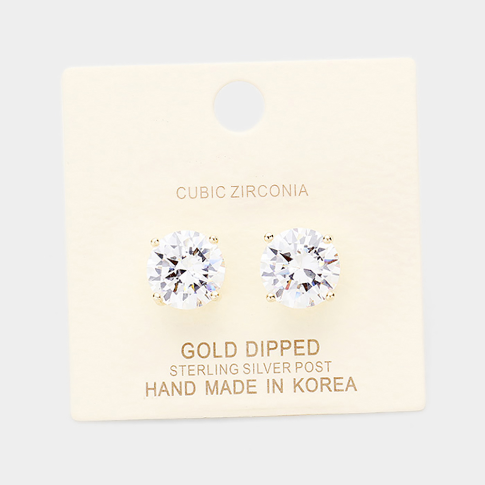 Gold Dipped 10mm Cubic Zirconia Round Stud Earrings