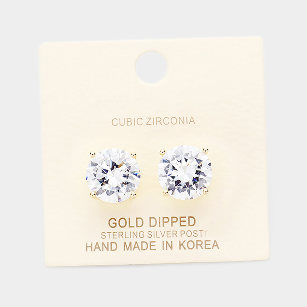 Gold Dipped 10mm Cubic Zirconia Round Stud Earrings