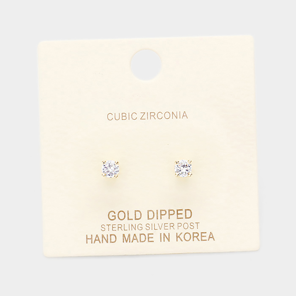 Gold Dipped 4mm Cubic Zirconia Round Stud Earrings