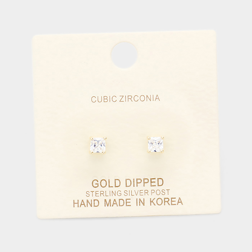 Gold Dipped 4mm Cubic Zirconia Square Stud Earrings