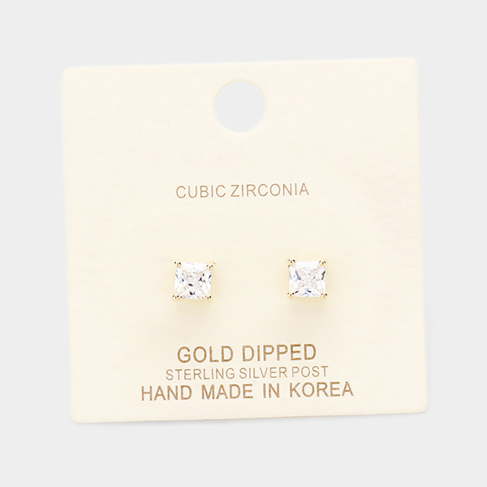 Gold Dipped 5mm Cubic Zirconia Square Stud Earring