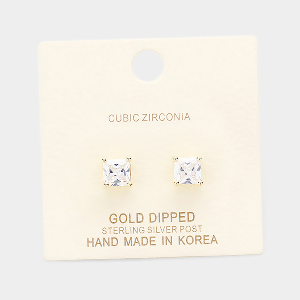 Gold Dipped 6mm Cubic Zirconia Square Stud Earrings