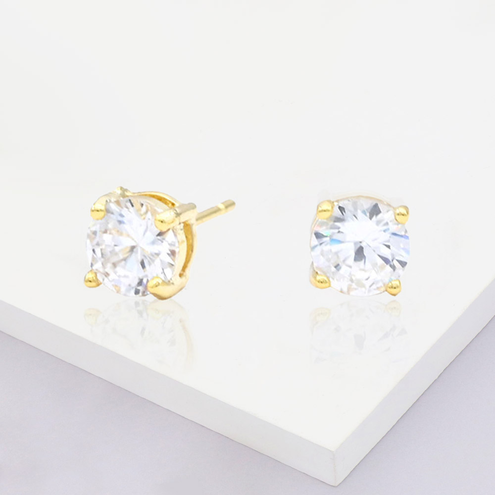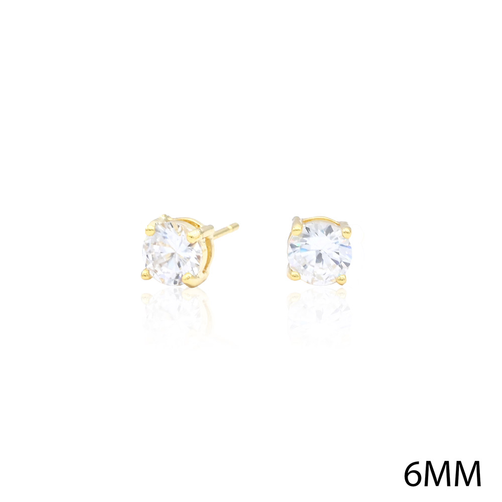 Gold Dipped 6mm Round CZ Stone Stud Earrings