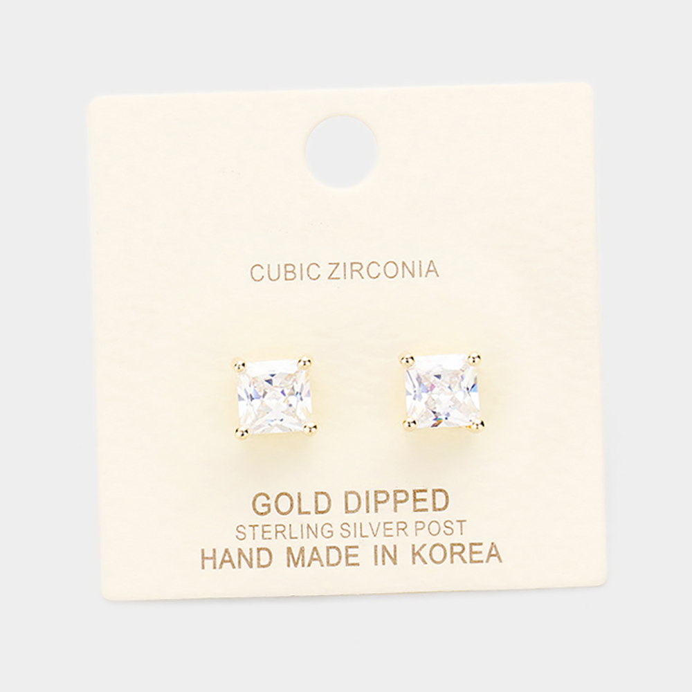 Gold Dipped 7mm Cubic Zirconia Square Stud Earrings