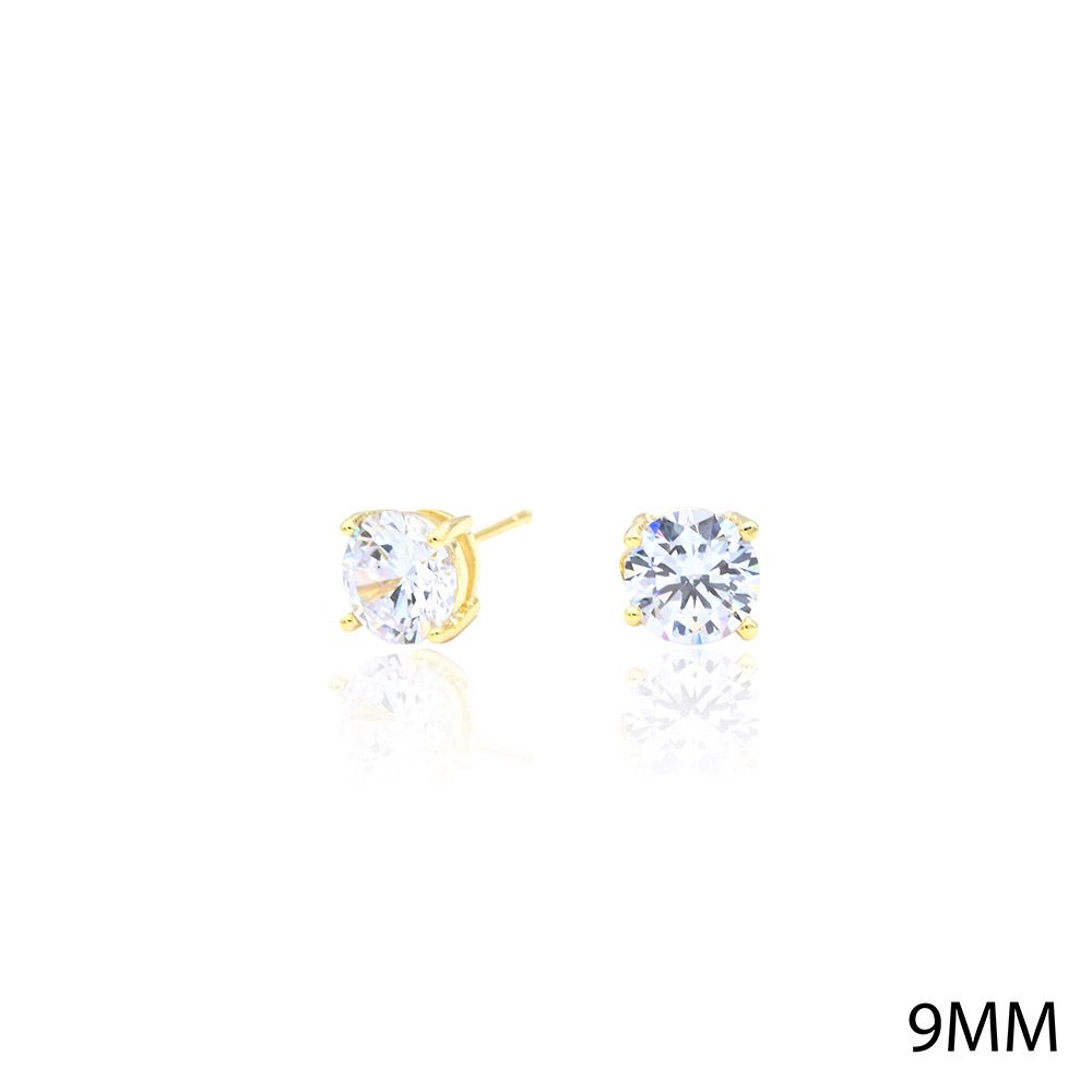 Gold Dipped 9mm Round CZ Stone Stud Earrings