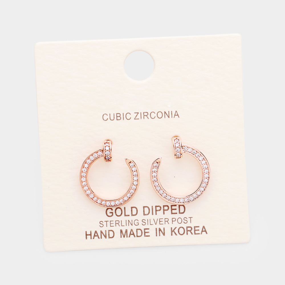 Gold Dipped Cubic Zirconia Metal Circle Stud Earrings