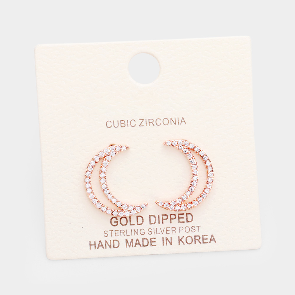 Gold Dipped Cubic Zirconia Moon Metal Stud Earrings
