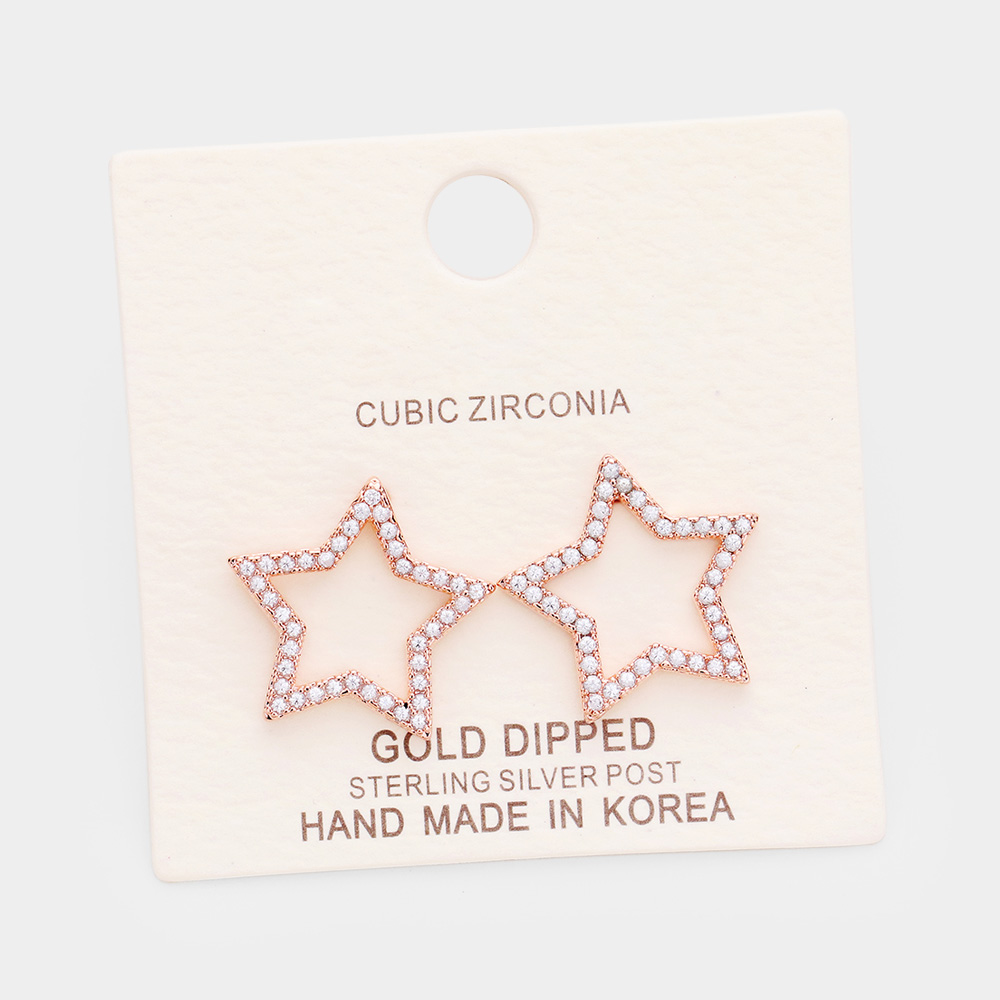 Gold Dipped Cubic Zirconia Open Star Stud Earrings
