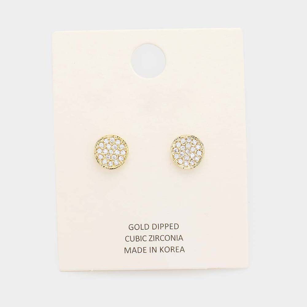 Gold Dipped Cubic Zirconia Pave Round Stud Earrings