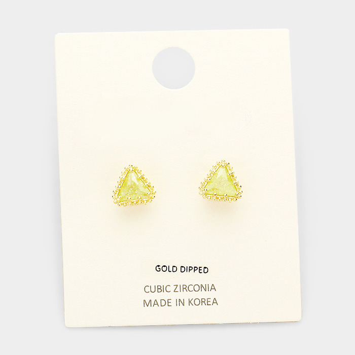 Gold Dipped Cubic Zirconia Triangle Stud Earrings