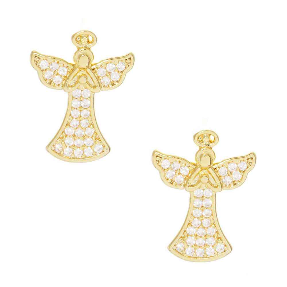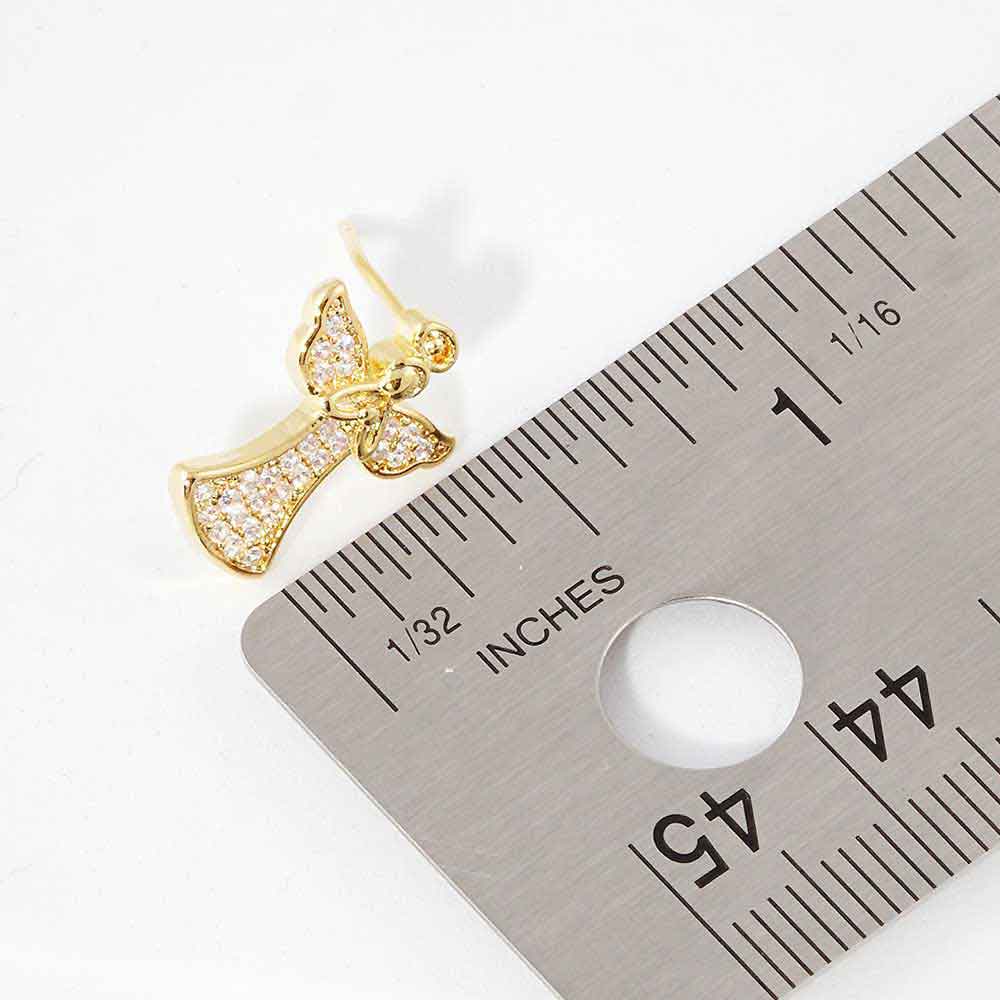 Gold Dipped CZ Embellished Metal Angel Stud Earrings