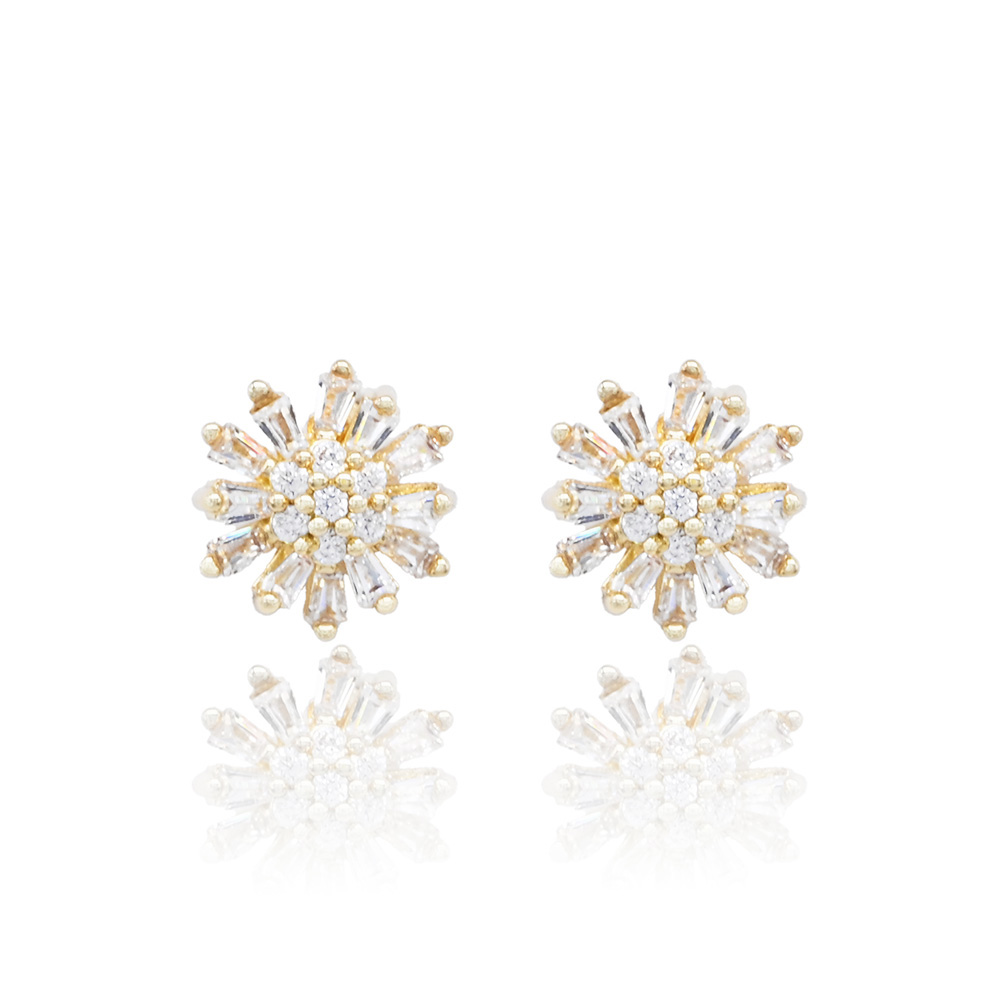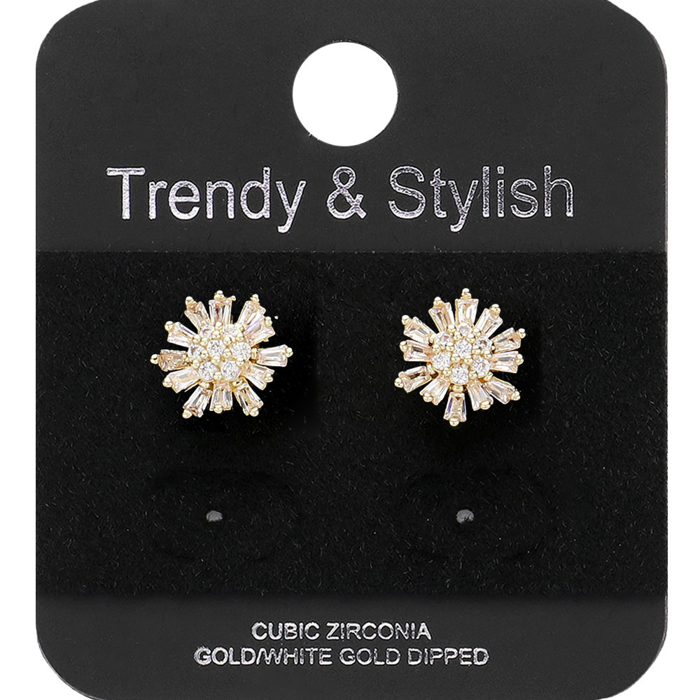 Gold Dipped CZ Stone Embellished Flower Stud Earrings
