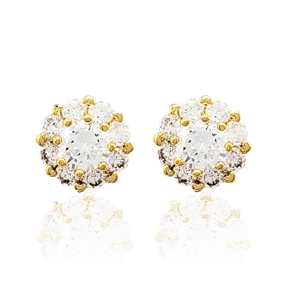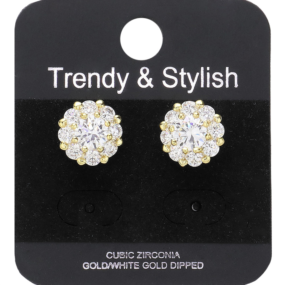 Gold Dipped CZ Stone Embellished Round Stud Earrings
