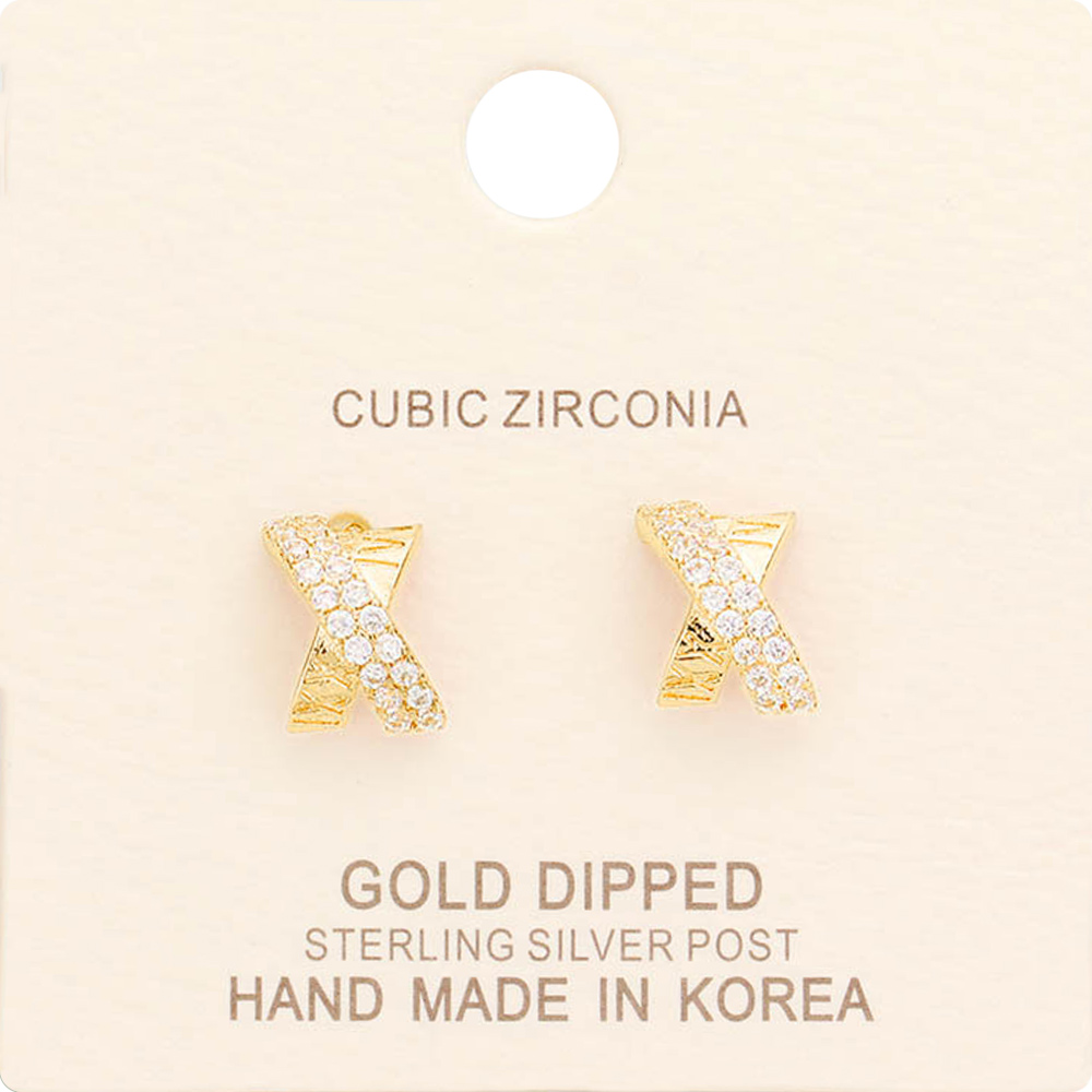 Gold Dipped CZ Stone Paved Crisscross Stud Earrings