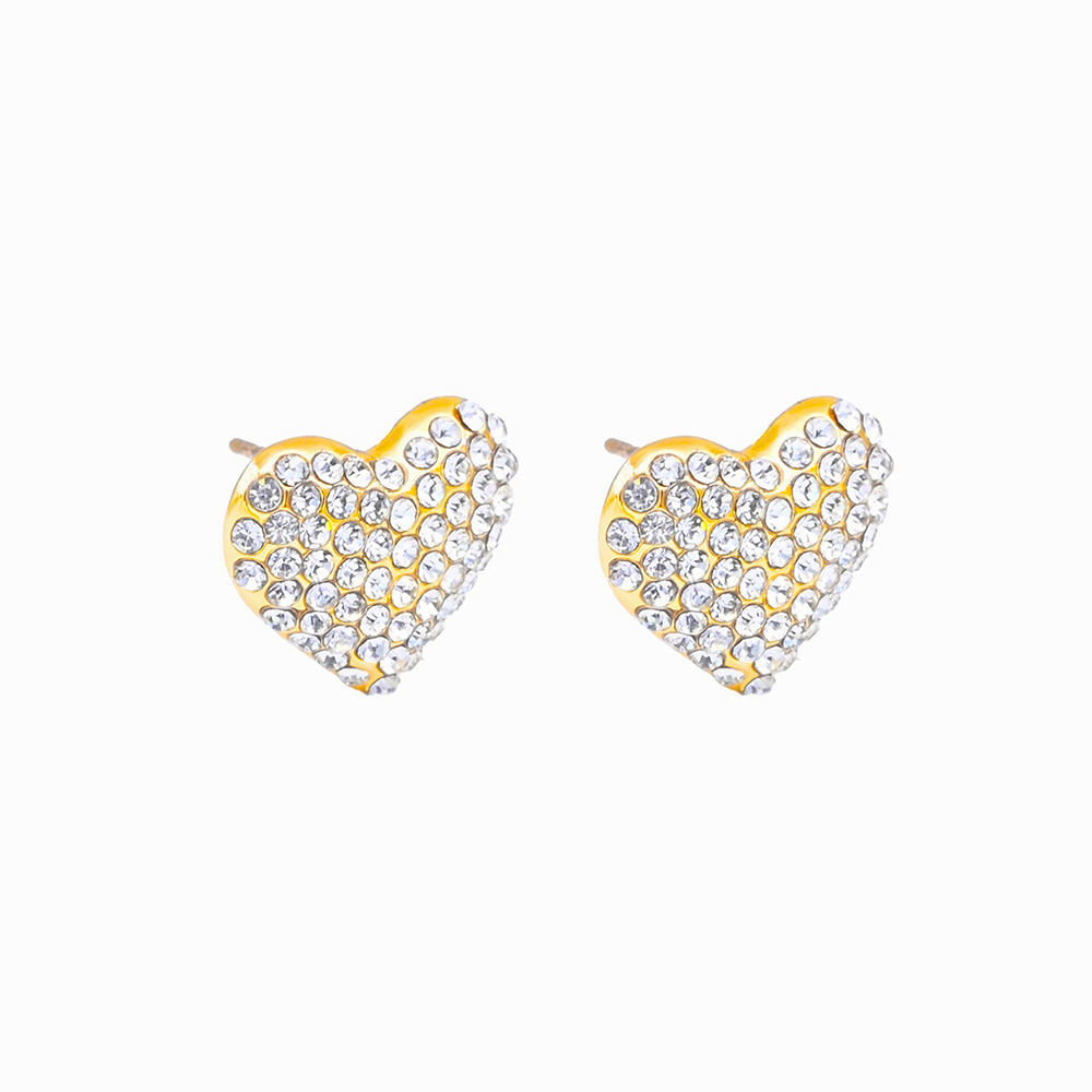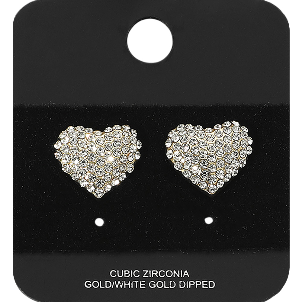 Gold Dipped CZ Stone Paved Heart Stud Earrings