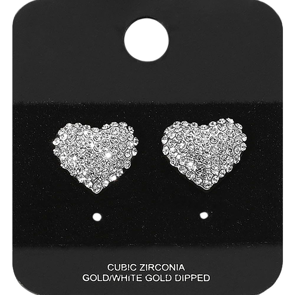 White Gold Dipped CZ Stone Paved Heart Stud Earrings