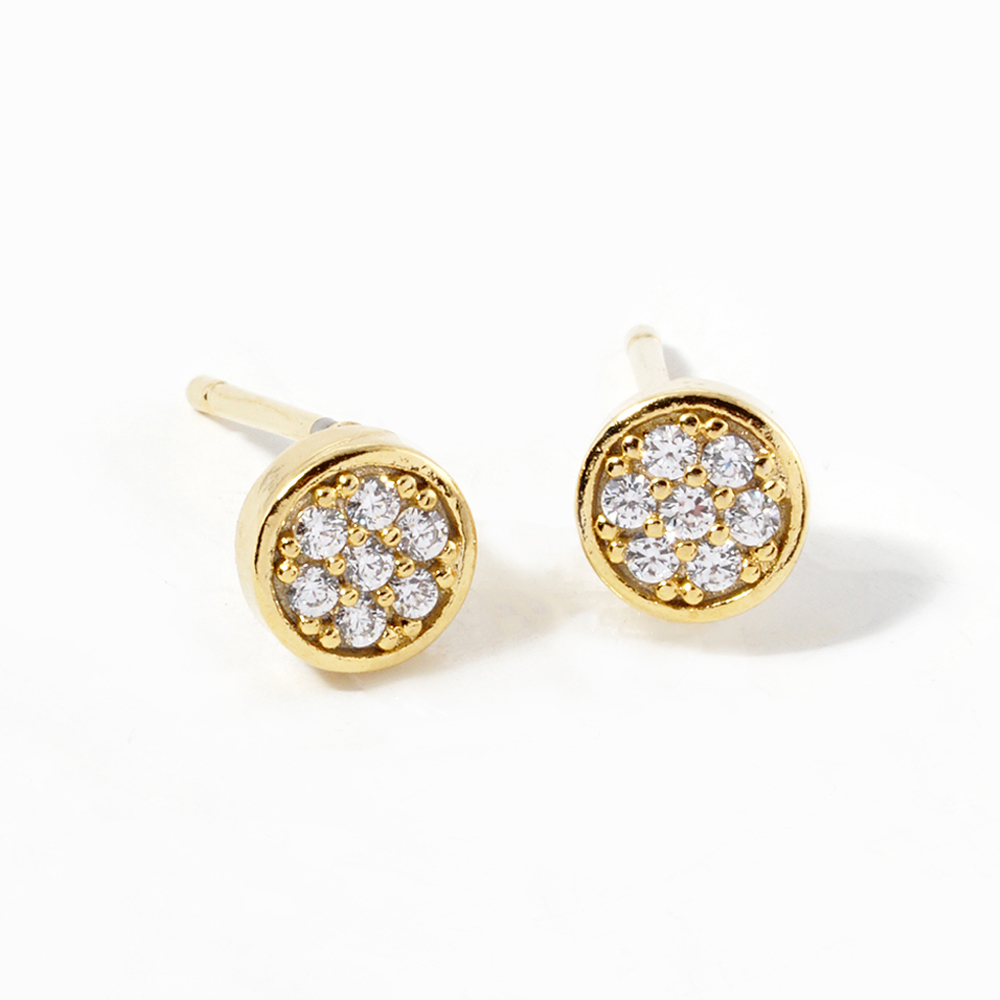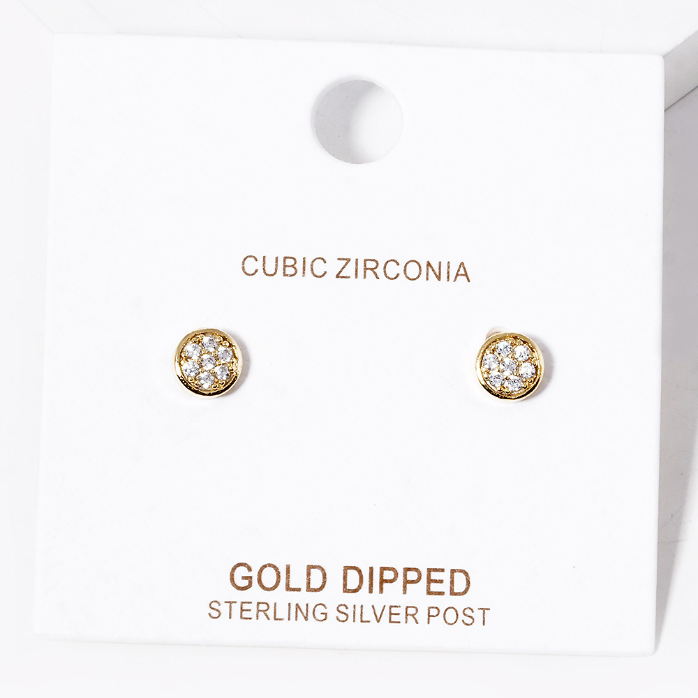 Gold Dipped CZ Stone Paved Mini Round Stud Earrings