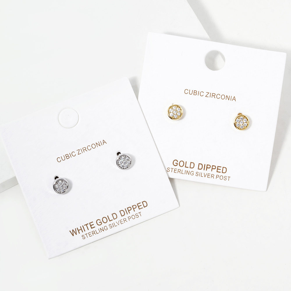 White Gold Dipped CZ Stone Paved Mini Round Stud Earrings