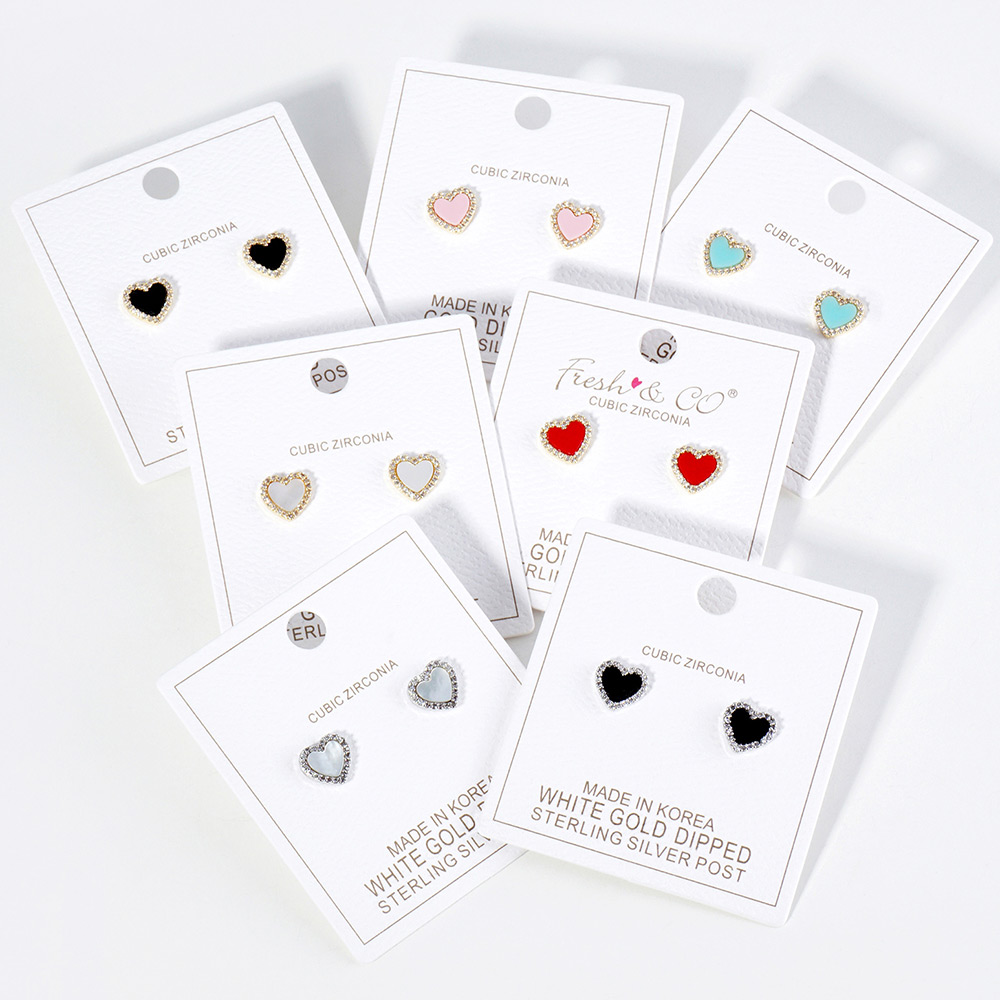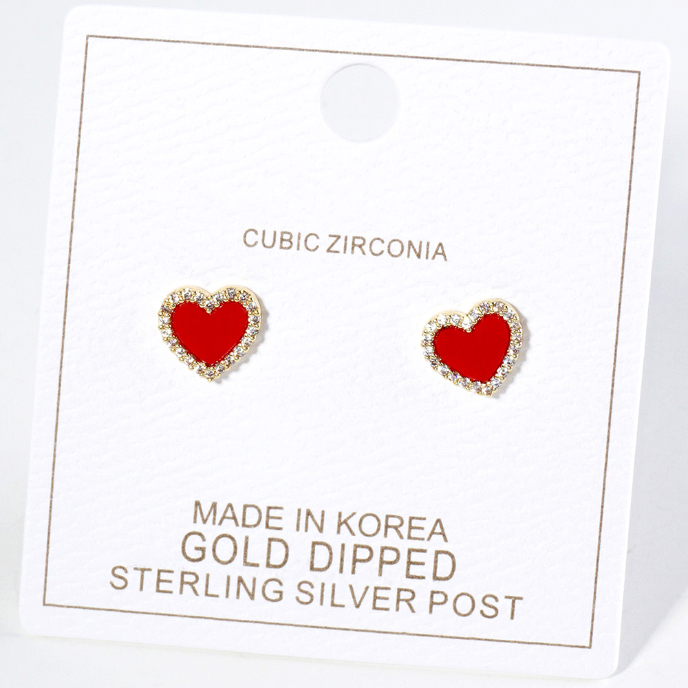 Gold Dipped CZ Stone Paved Rim Heart Stud Earrings
