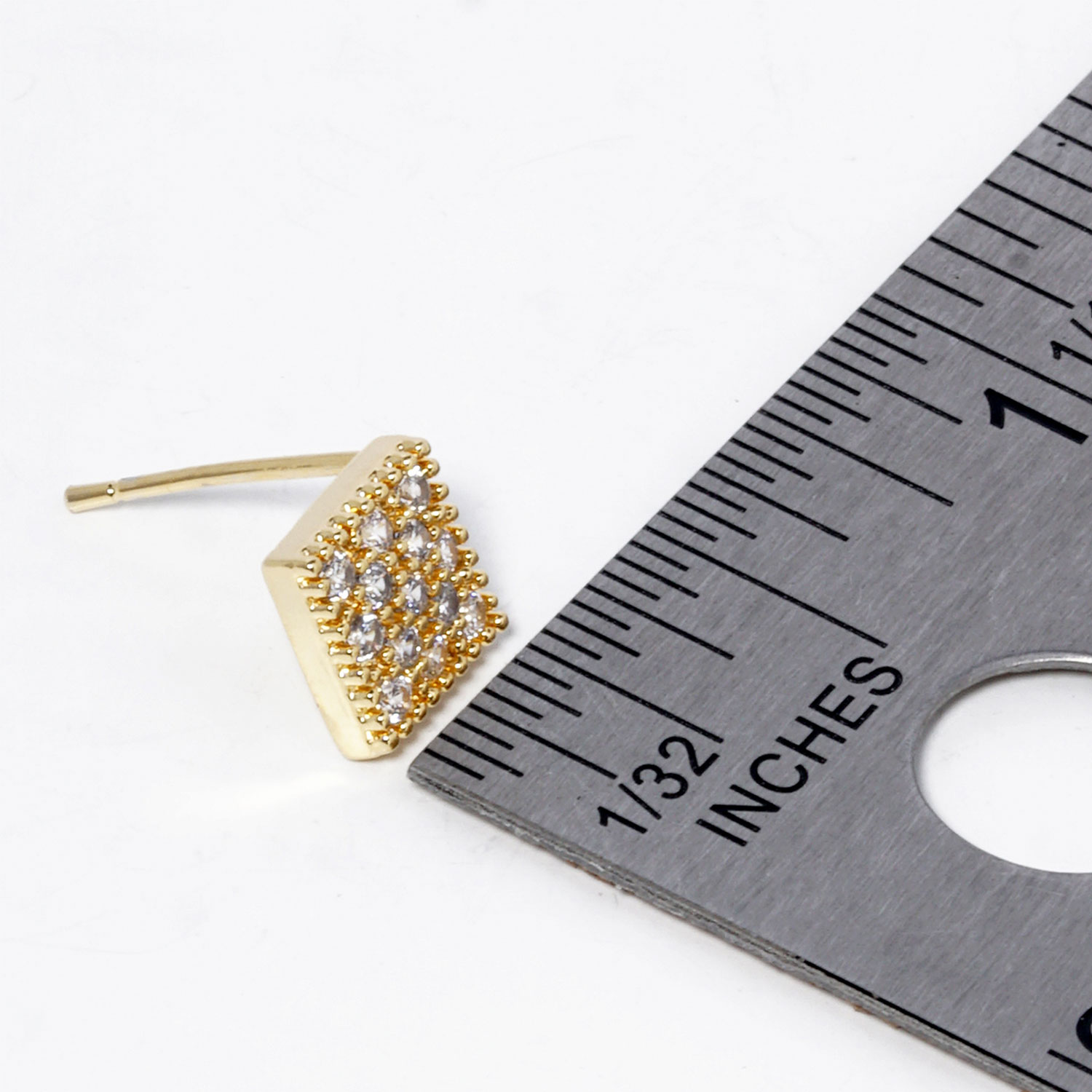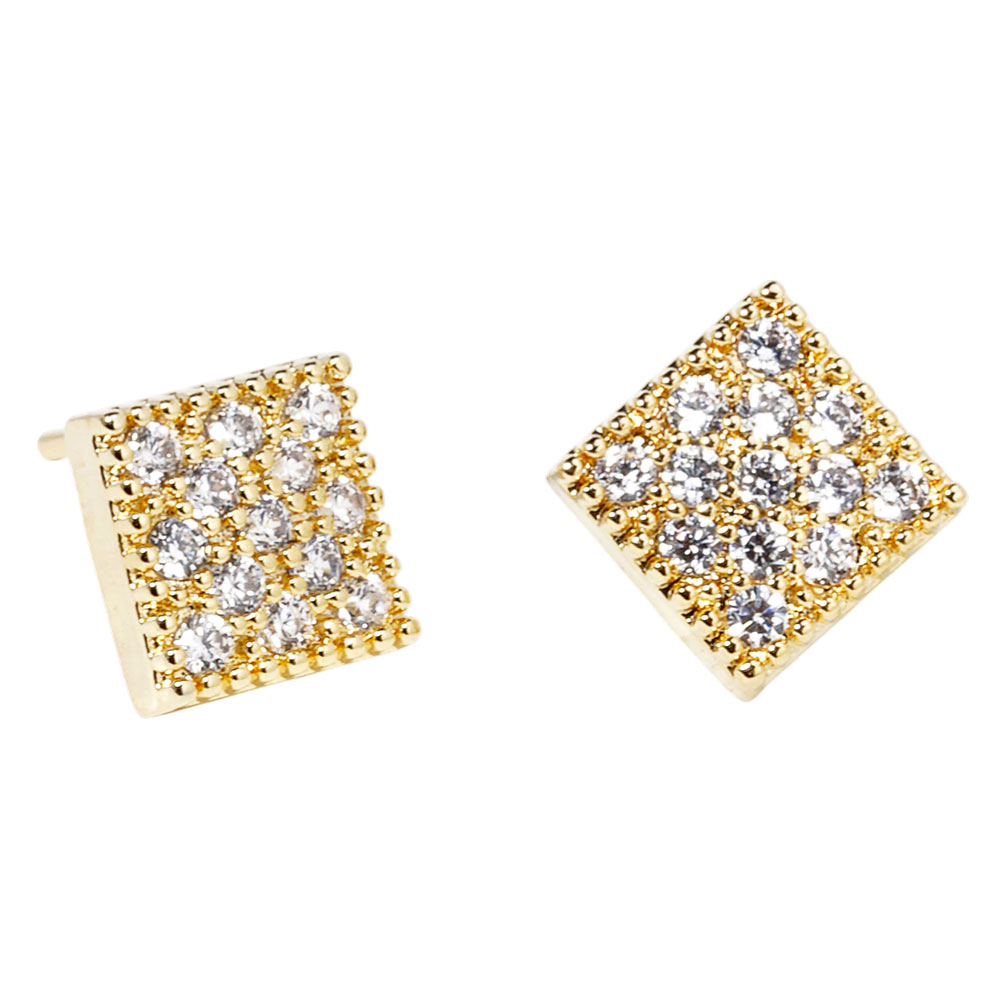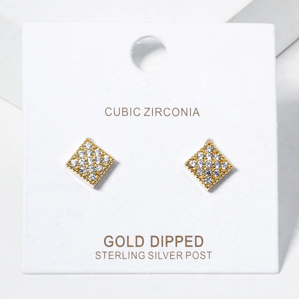 Details • Size : 0.25" X 0.25" • Post Back • Add refined brilliance to your look with these square stud earrings featuring a clustered cubic zirconia crystal design. Their geometric elegance and subtle shimmer make them ideal for both everyday wear and special events. A timeless accessory that pairs effortlessly with any style. • Lead and Nickel Compliant • Made In Korea • Gold Dipped • CZ Cubic Zirconia