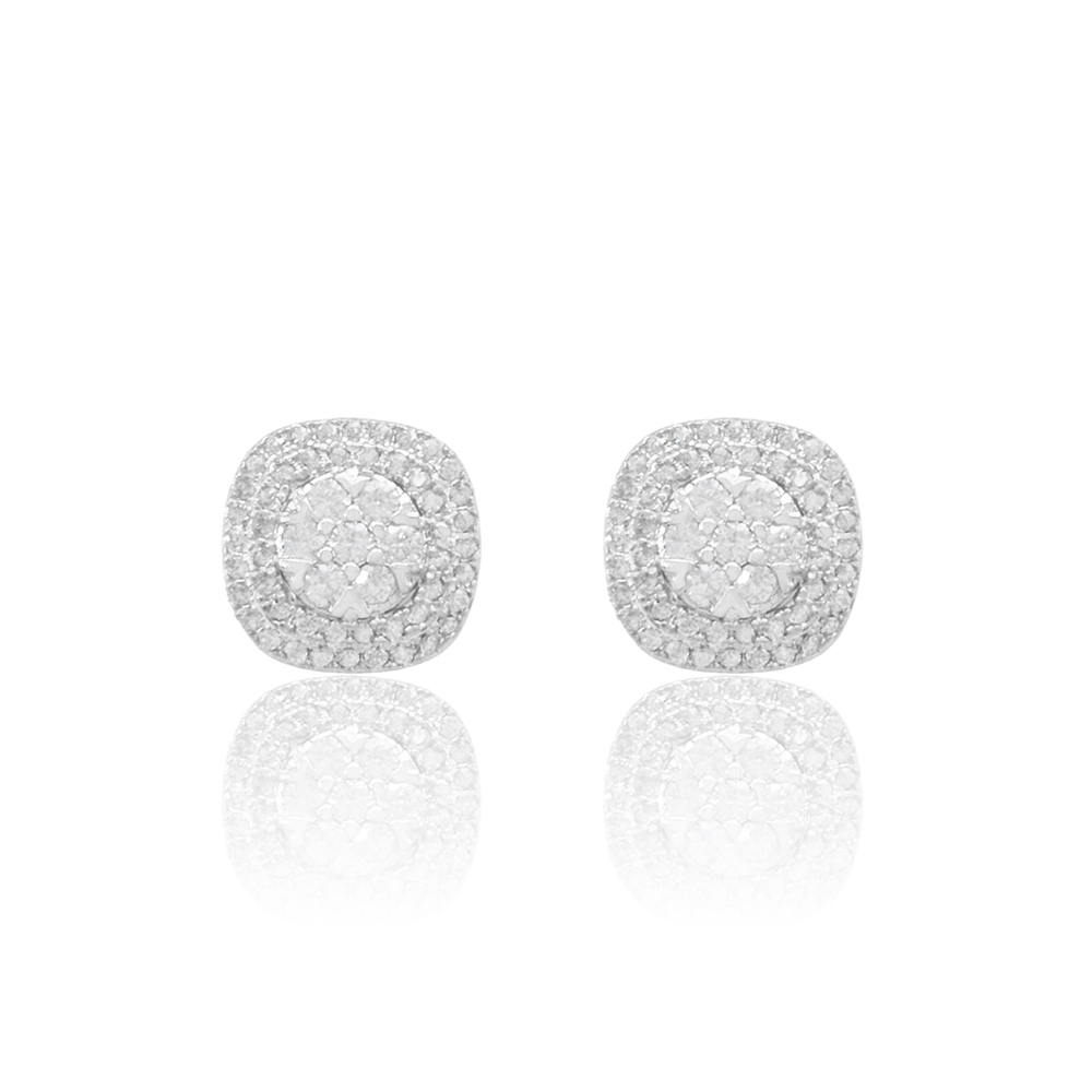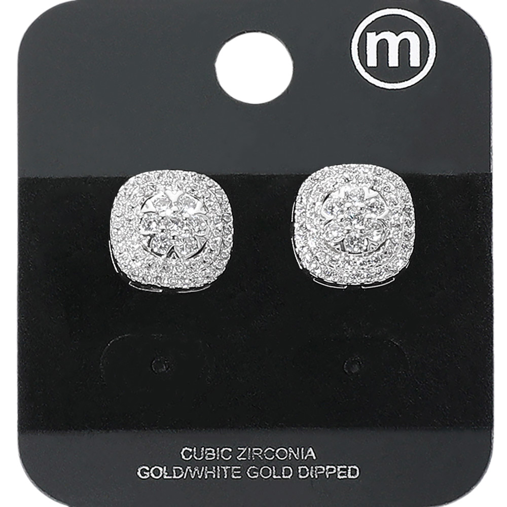 Gold Dipped CZ Stone Paved Square Stud Earrings