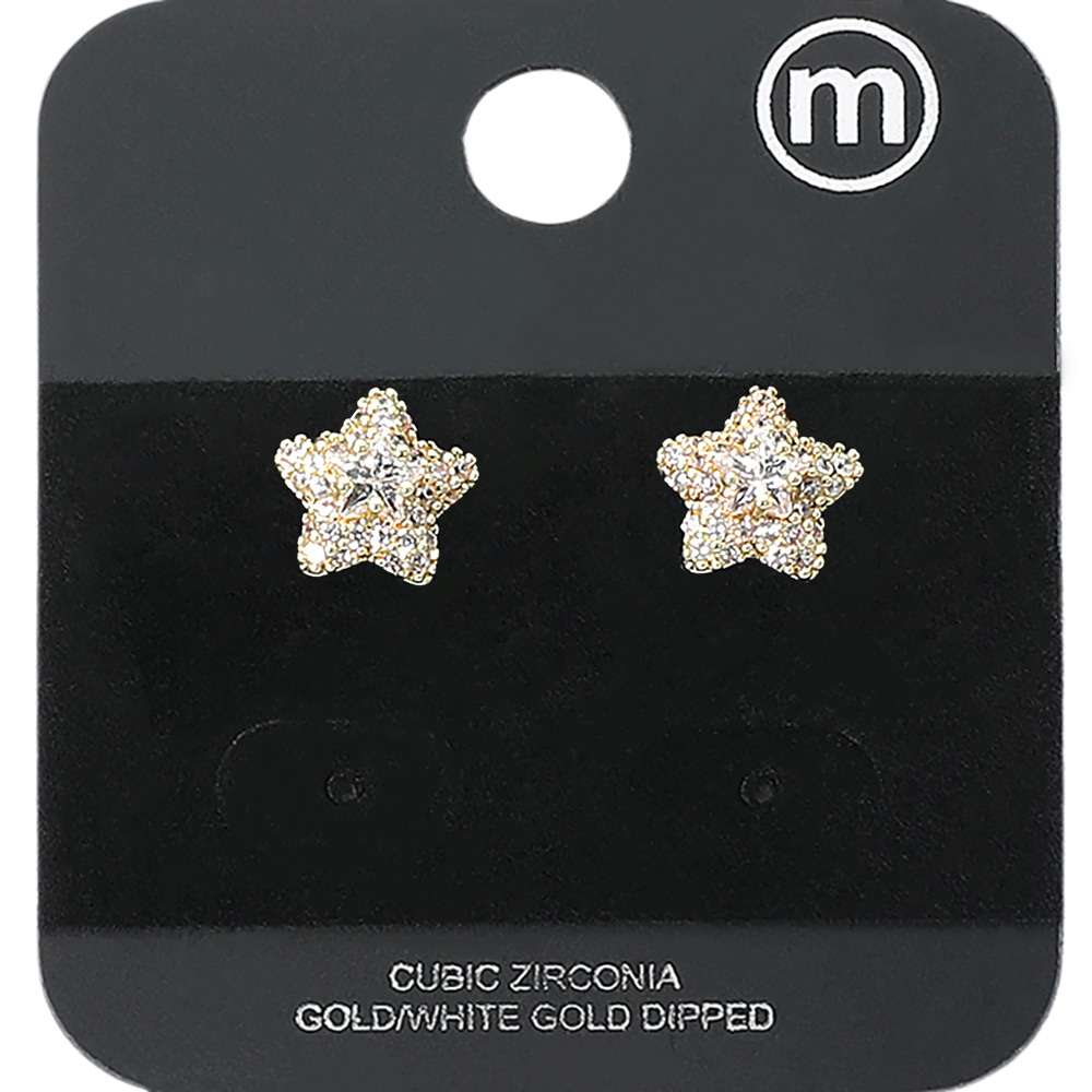 Gold Dipped CZ Stone Paved Star Stud Earrings