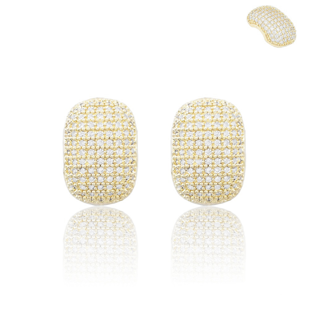 White Gold Dipped CZ Stone Paved Stud Earrings