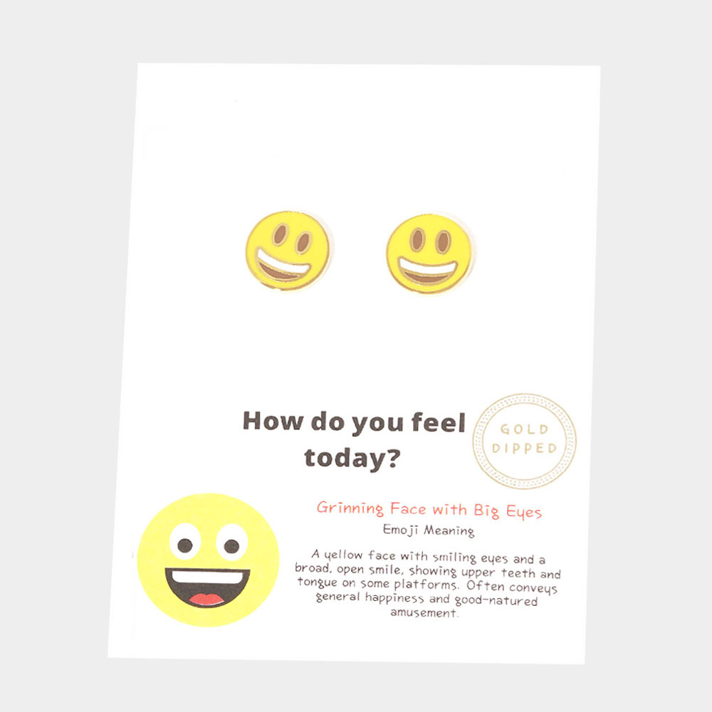 Gold Dipped Emoji Enamel Metal Round Stud Earrings