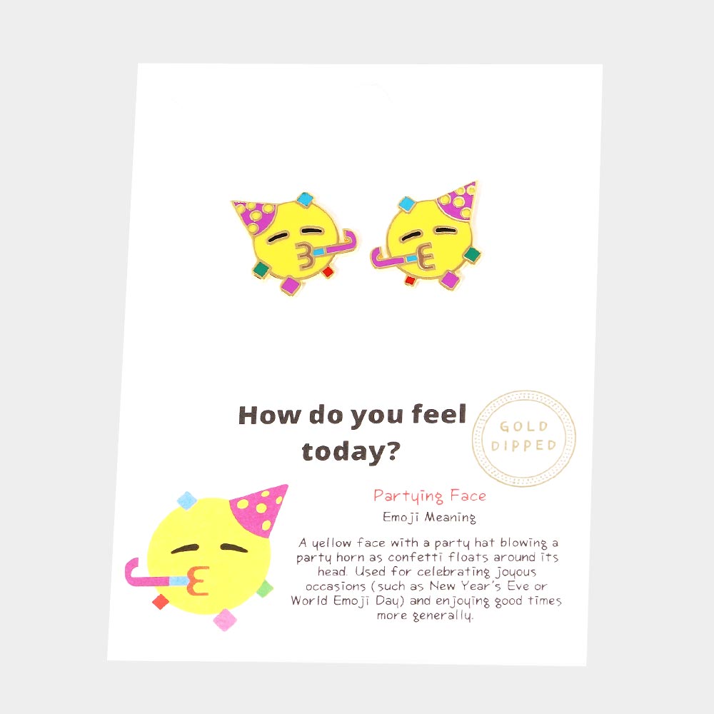 Gold Dipped Emoji Enamel Metal Round Stud Earrings
