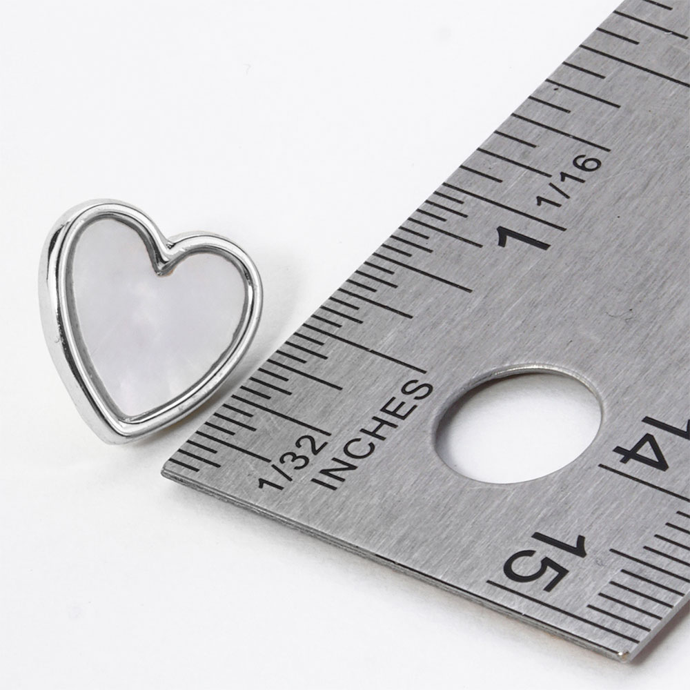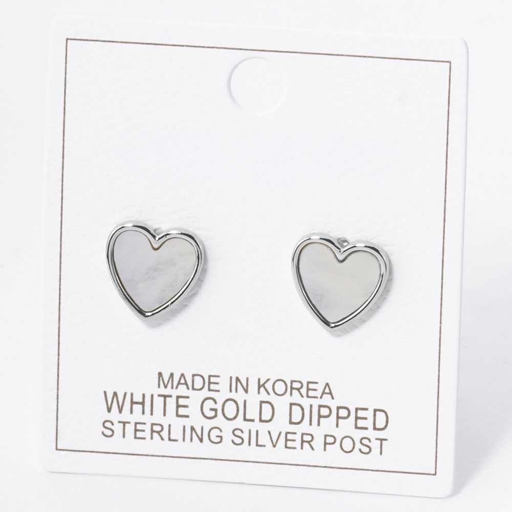 Details • Size : 0.5" X 0.5" • Charming heart shaped mother of pearl stud earrings featuring a bold outlined design that adds a playful and modern touch. Lightweight and easy to wear, these cute studs make a perfect everyday accessory or a thoughtful gift for someone who loves fun statement pieces. • Made In Korea • Gold Dipped • Sterling Silver Post