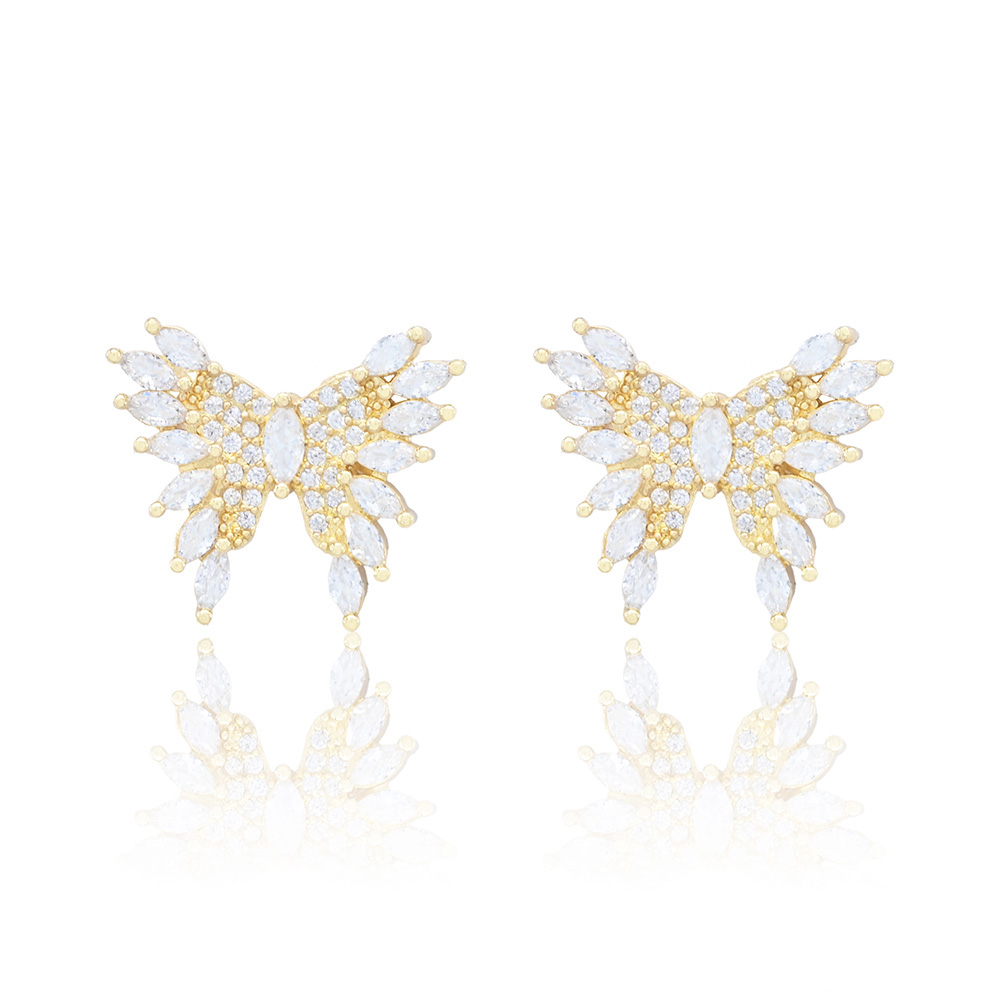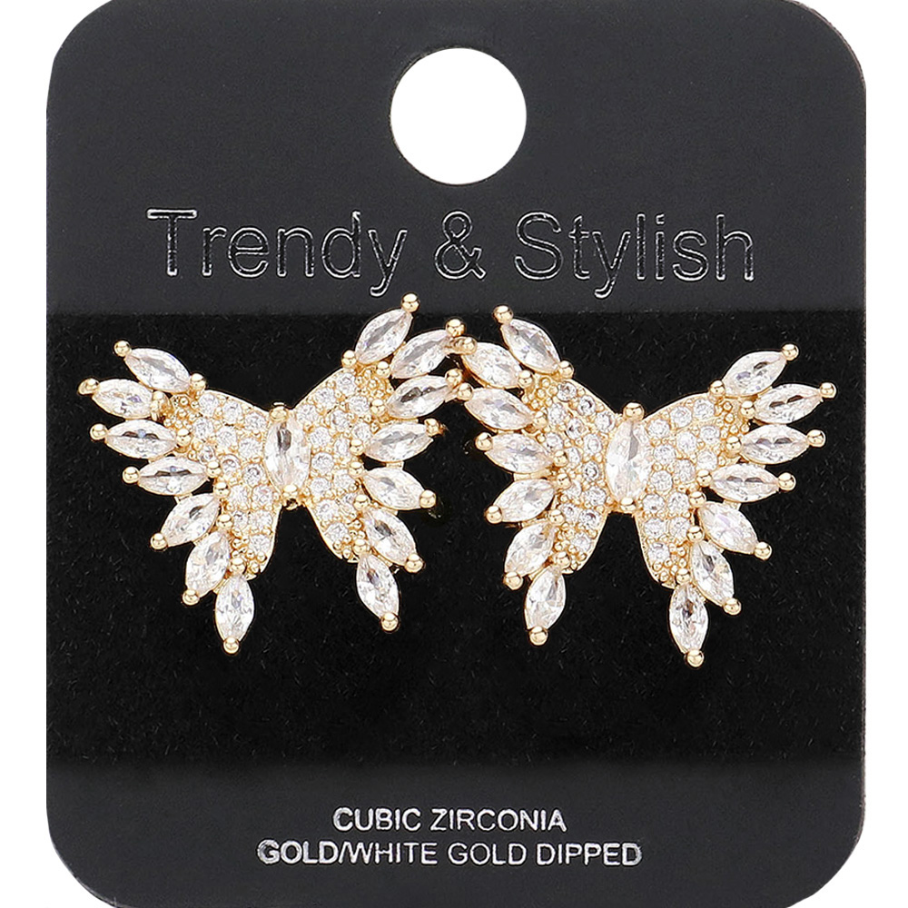 Gold Dipped Marquise CZ Stone Embellished Butterfly Stud Earrings