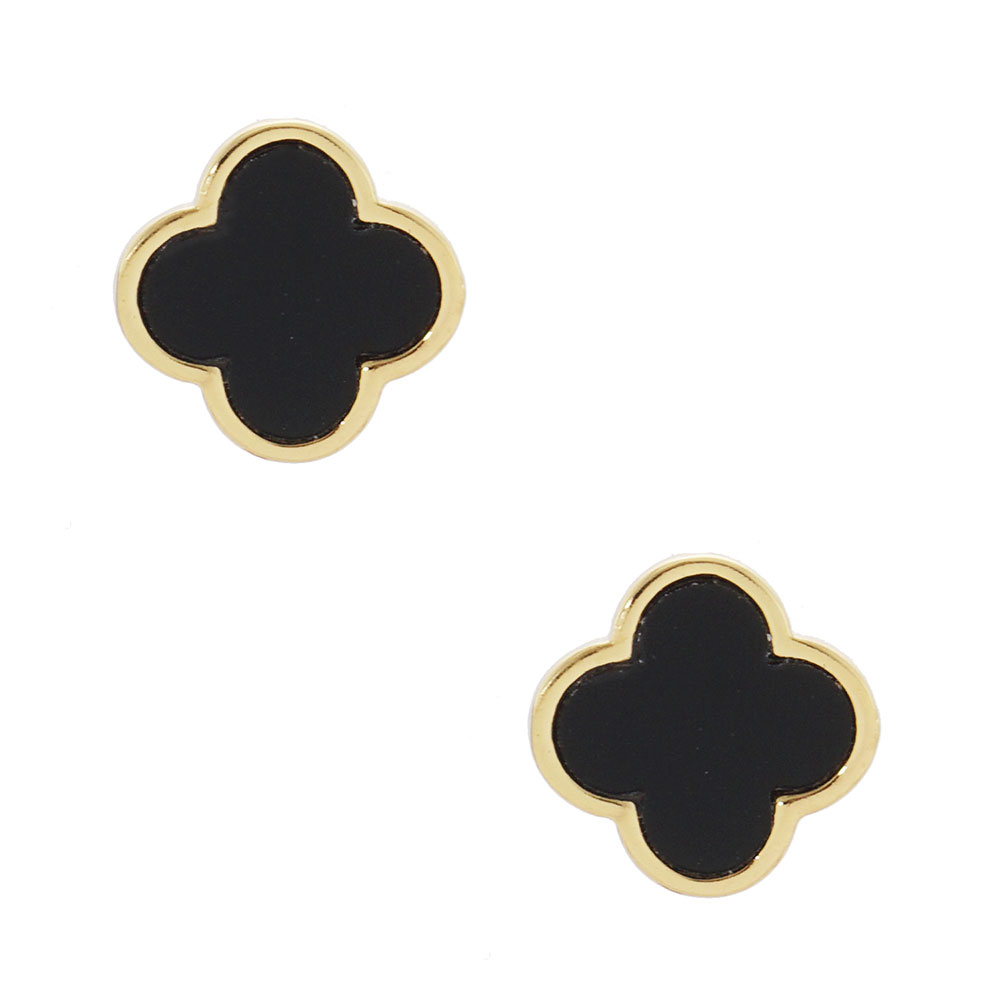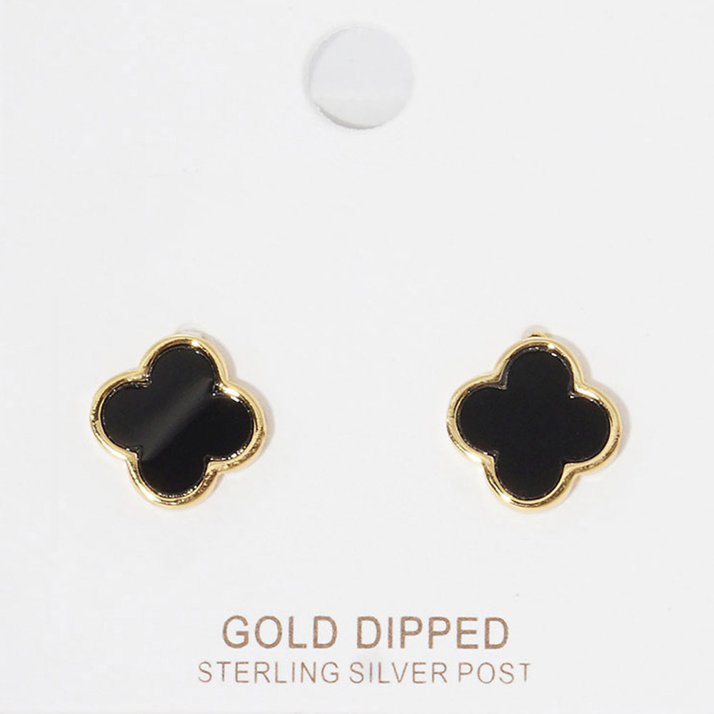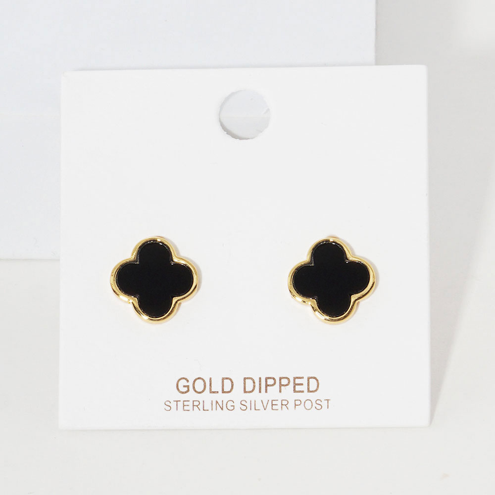 Gold Dipped Metal Trim Quatrefoil Stud Earrings