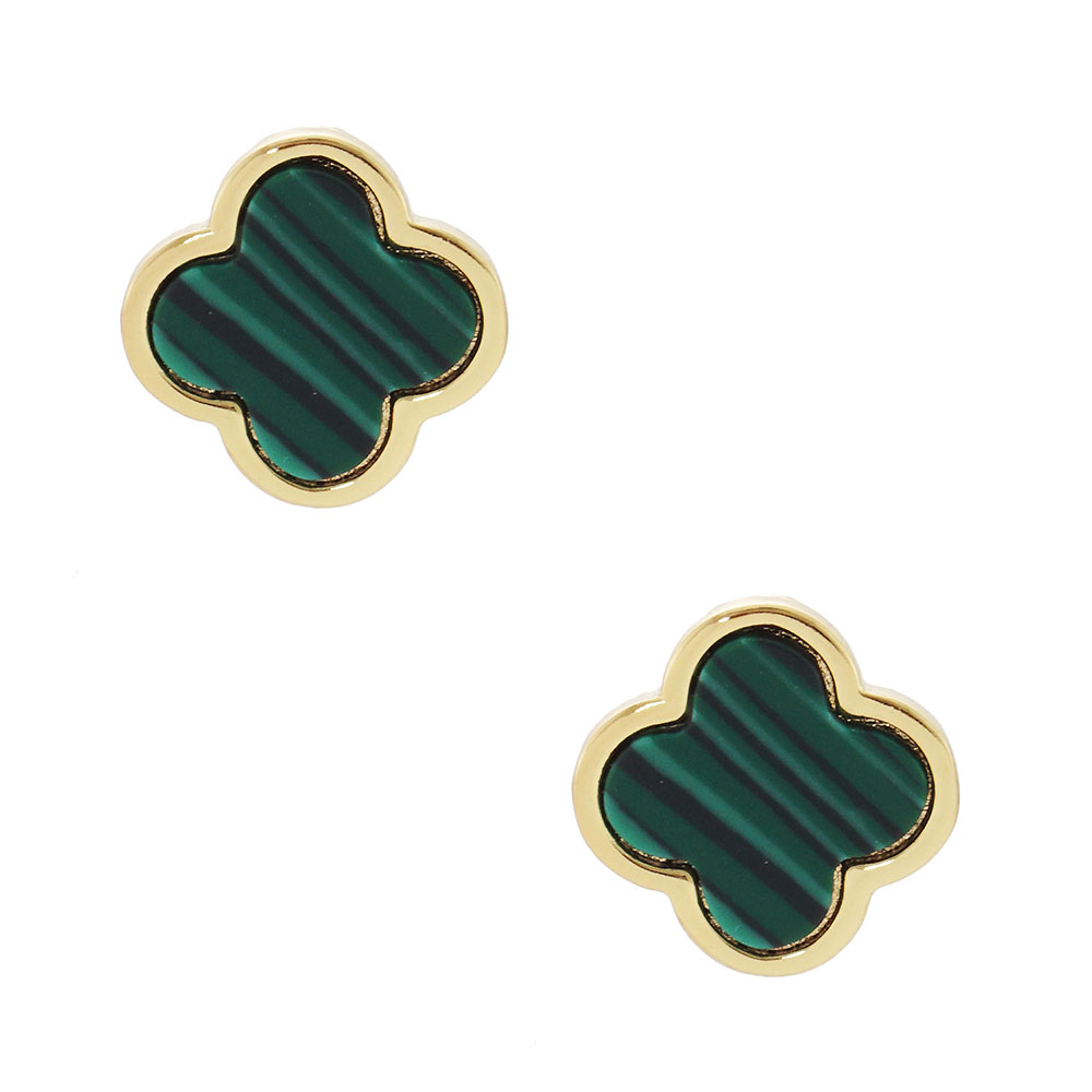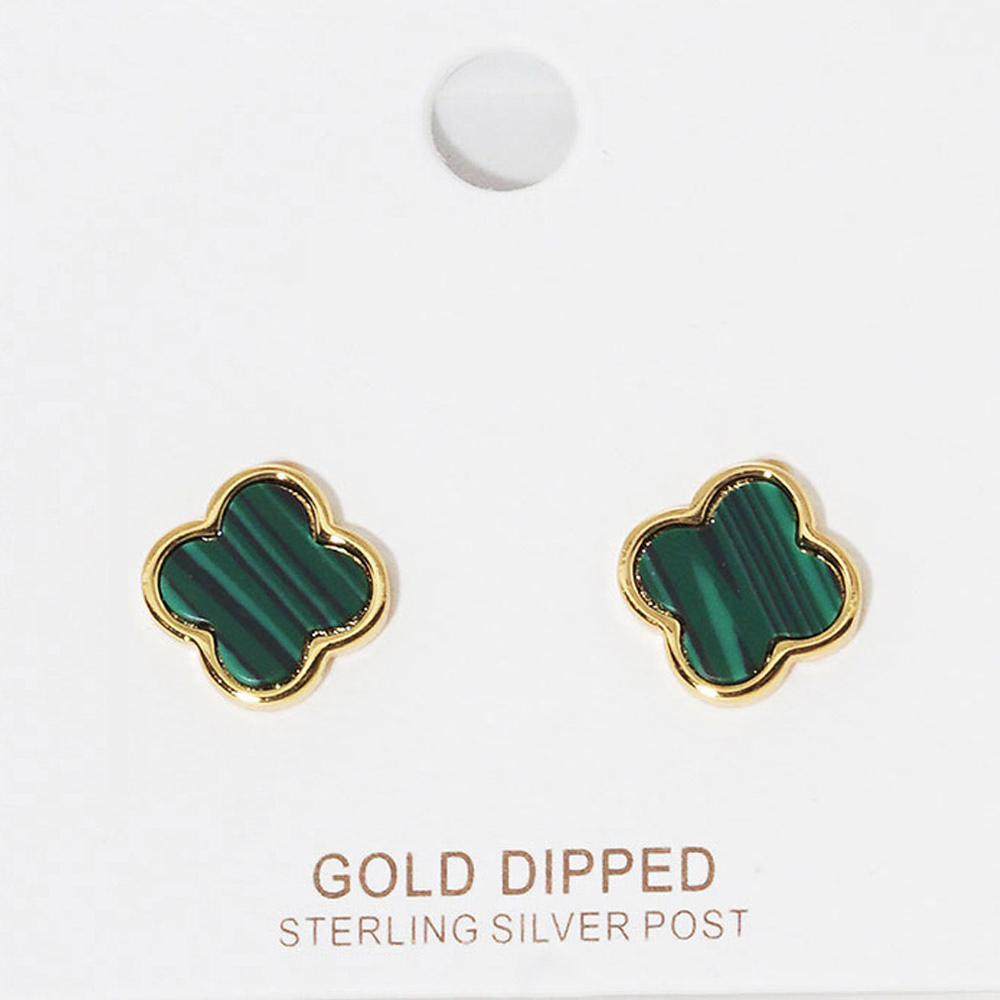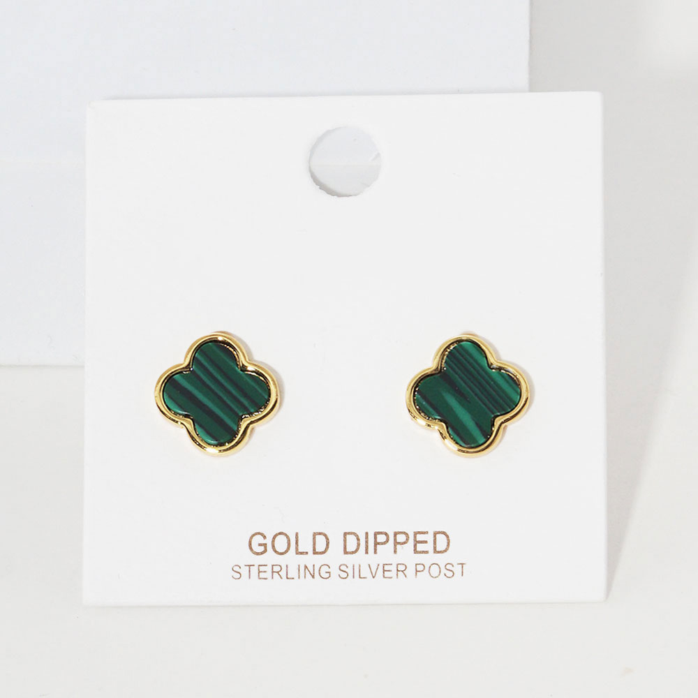 Gold Dipped Metal Trim Quatrefoil Stud Earrings