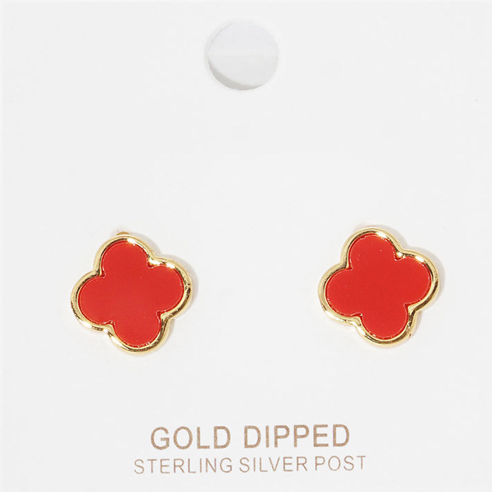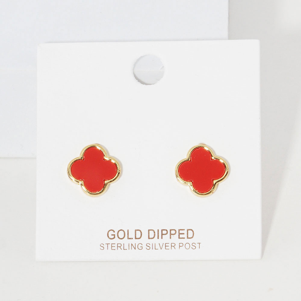 Gold Dipped Metal Trim Quatrefoil Stud Earrings