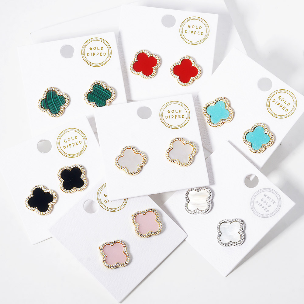 Gold Dipped Brass Metal Natural Stone Quatrefoil Station Necklace