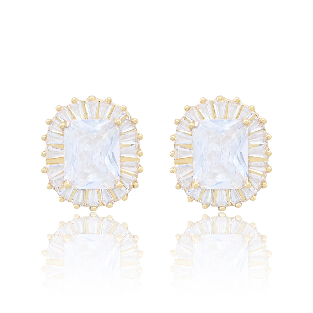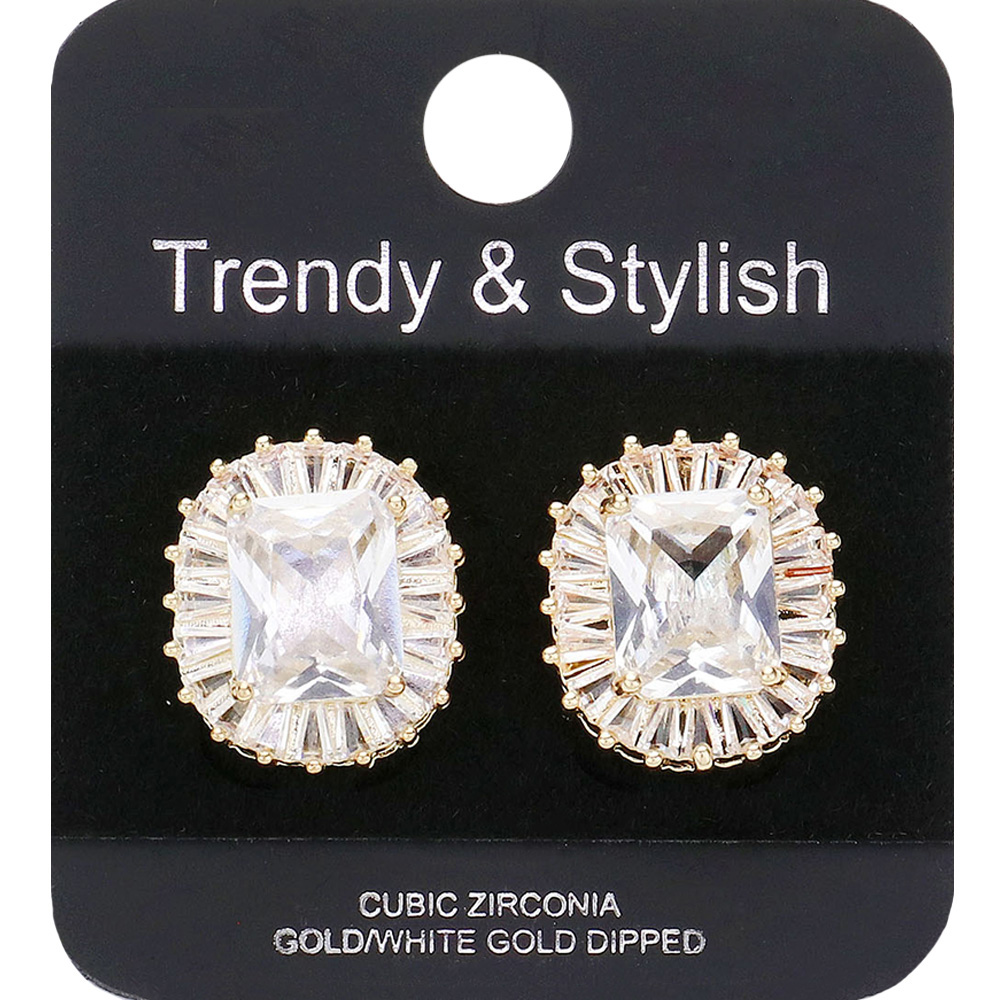 Gold Dipped Rectangle CZ Stone Pointed Stud Earrings