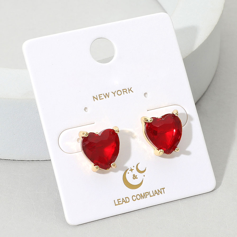 • These faceted heart stud earrings dazzle with radiant shine and a classic prong setting. A charming accessory that adds playful sophistication and timeless romance to your look, day or night.