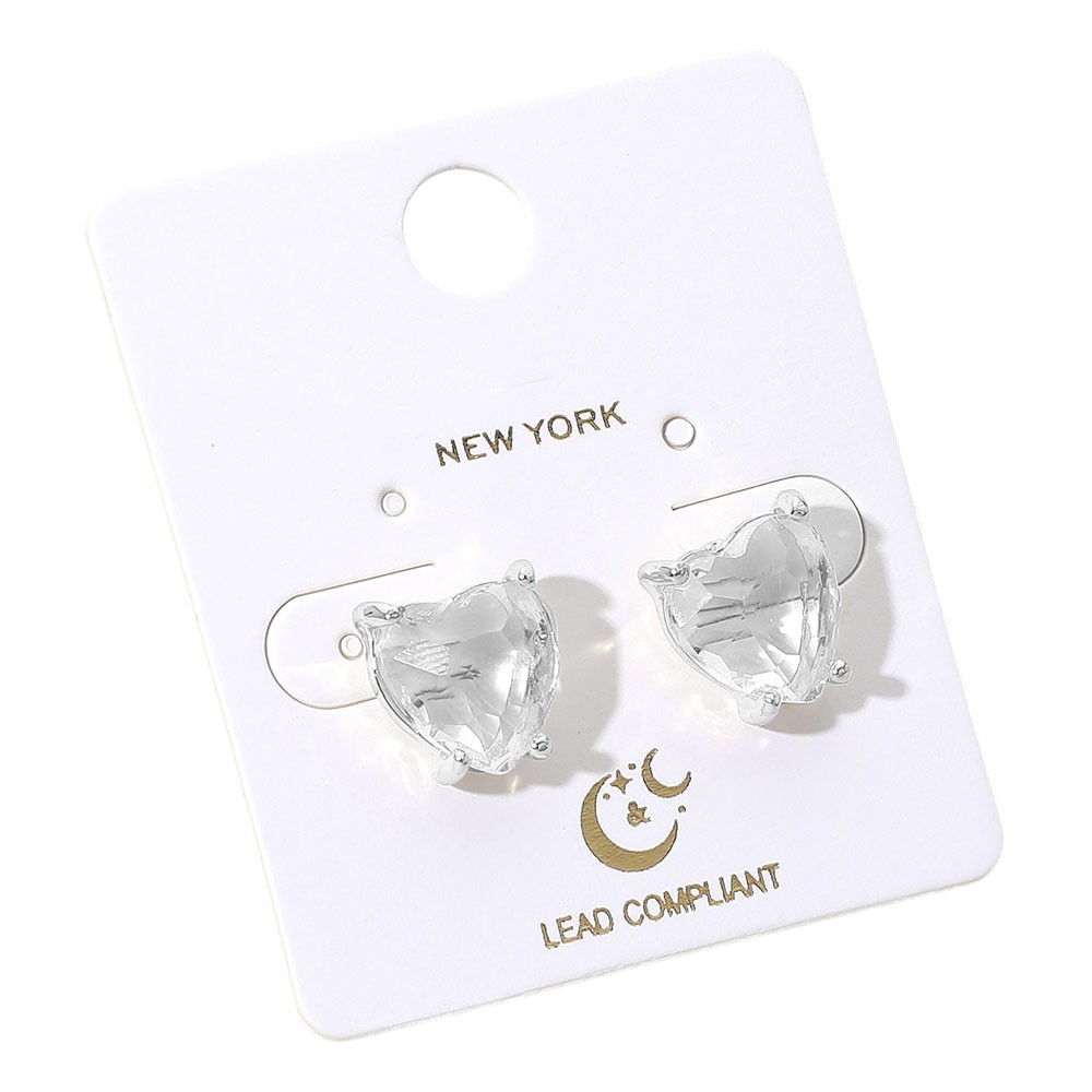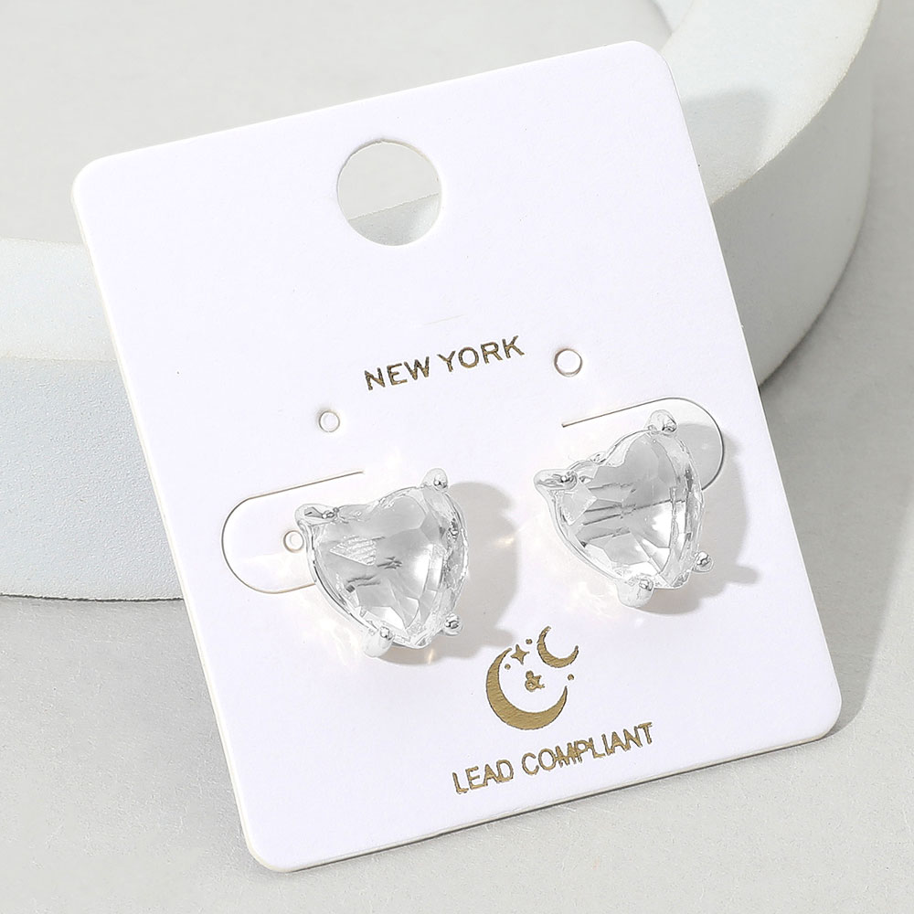 • These faceted heart stud earrings dazzle with radiant shine and a classic prong setting. A charming accessory that adds playful sophistication and timeless romance to your look, day or night.