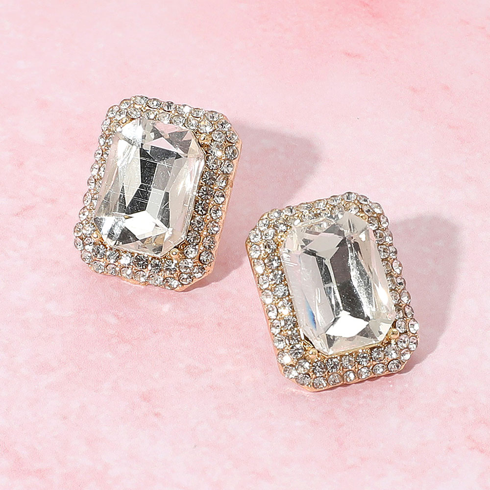 Iridescent Rectangular Rhinestone Evening Stud Earrings Iridescent Rectangular Rhinestone Evening Stud Earrings Iridescent Rectangular Rhinestone Evening Stud Earrings