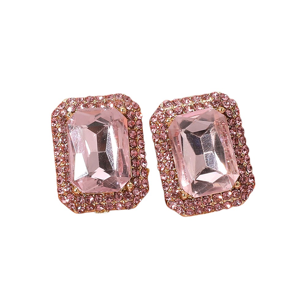 Details • Size : 0.7" X 0.75" • Post Back • Make a statement with these iridescent rectangular stud earrings. Framed with sparkling rhinestones, they’re the perfect accessory for adding refined glamour to any outfit, from formal events to everyday chic. • Lead and Nickel Compliant