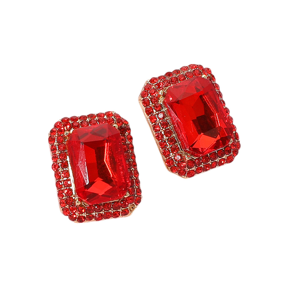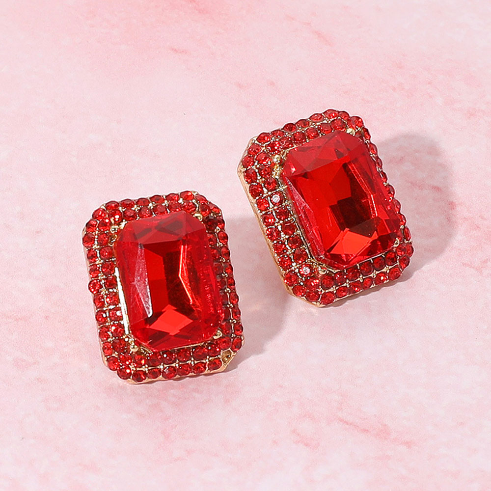 Details • Size : 0.7" X 0.75" • Post Back • Make a statement with these iridescent rectangular stud earrings. Framed with sparkling rhinestones, they’re the perfect accessory for adding refined glamour to any outfit, from formal events to everyday chic. • Lead and Nickel Compliant