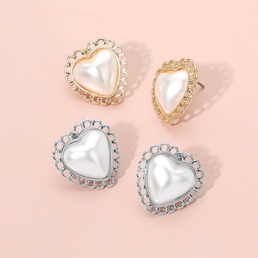 Lace Edge Pearl Heart Stud Earrings Lace Edge Pearl Heart Stud Earrings Lace Edge Pearl Heart Stud Earrings