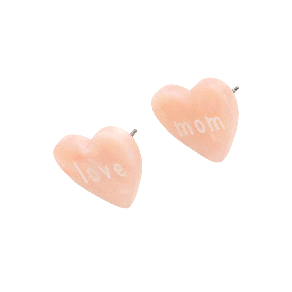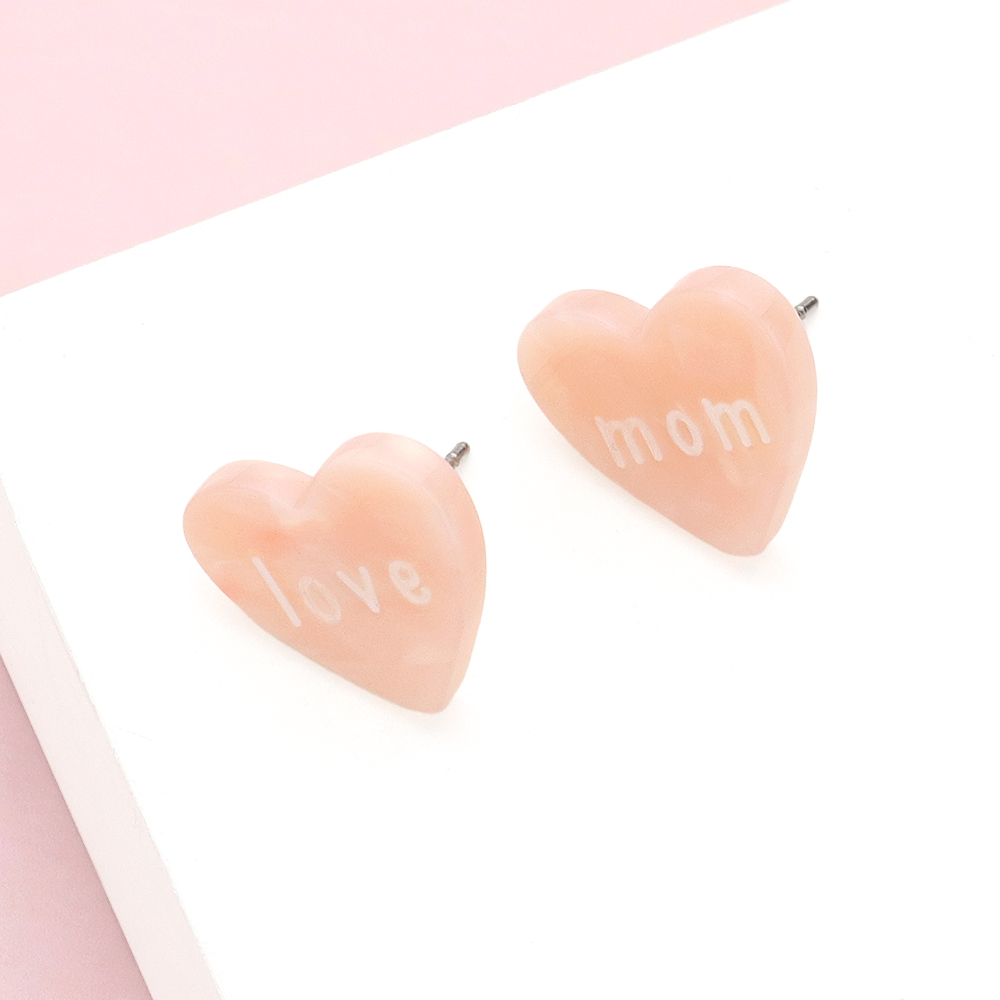 love mom Message Celluloid Acetate Heart Stud Earrings