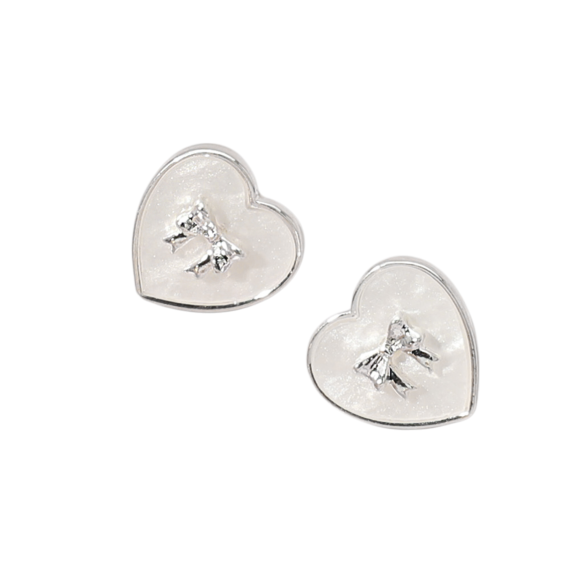 Metal Bow Pointed Pearl Heart Stud Earrings