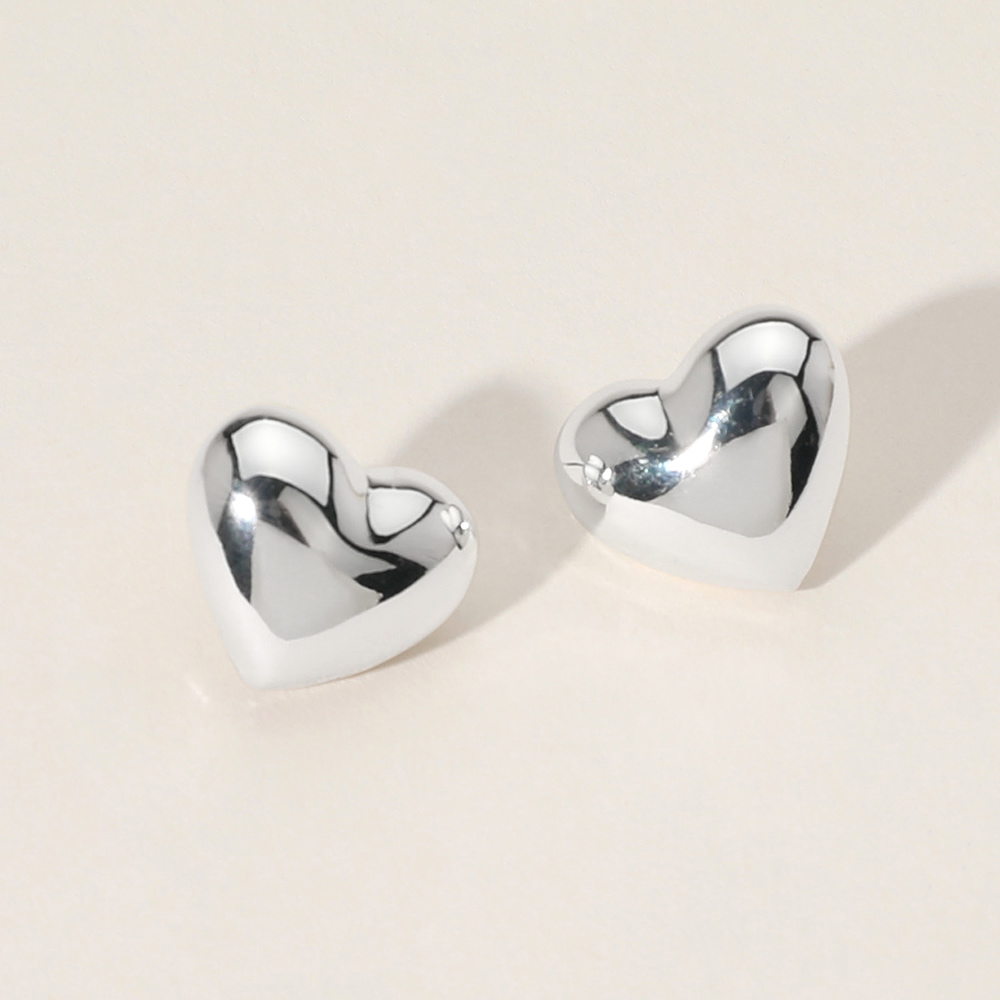 Metal Puffy Heart Stud Earrings