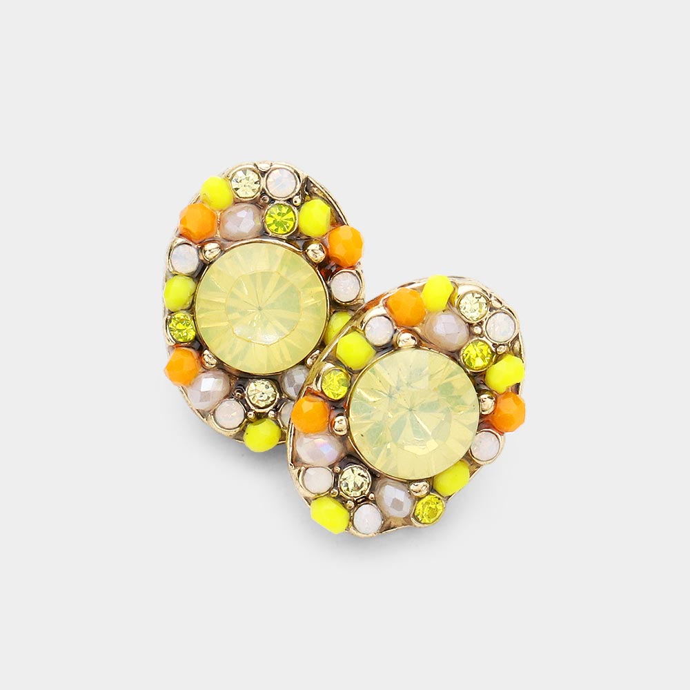 Multi Stone Cluster Oval Stud Earrings