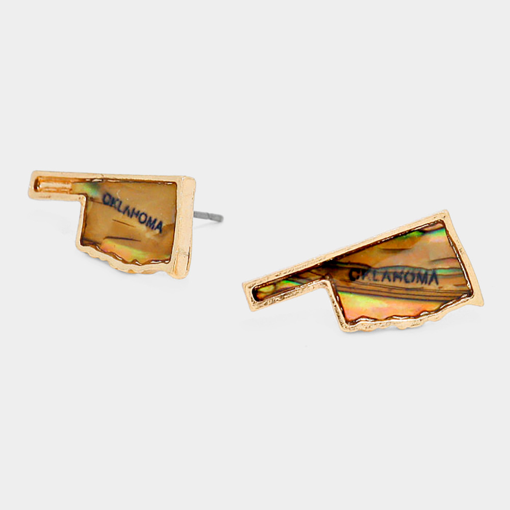Oklahoma State Map Abalone Stud Earrings