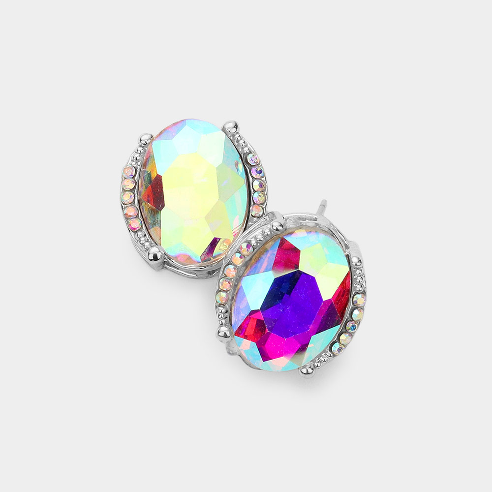 Rectangular Glass Stone Cluster Dangle Evening Earrings
