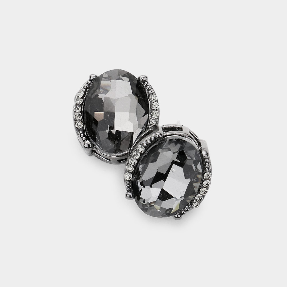 Oval Stone Accented Stud Evening Earrings