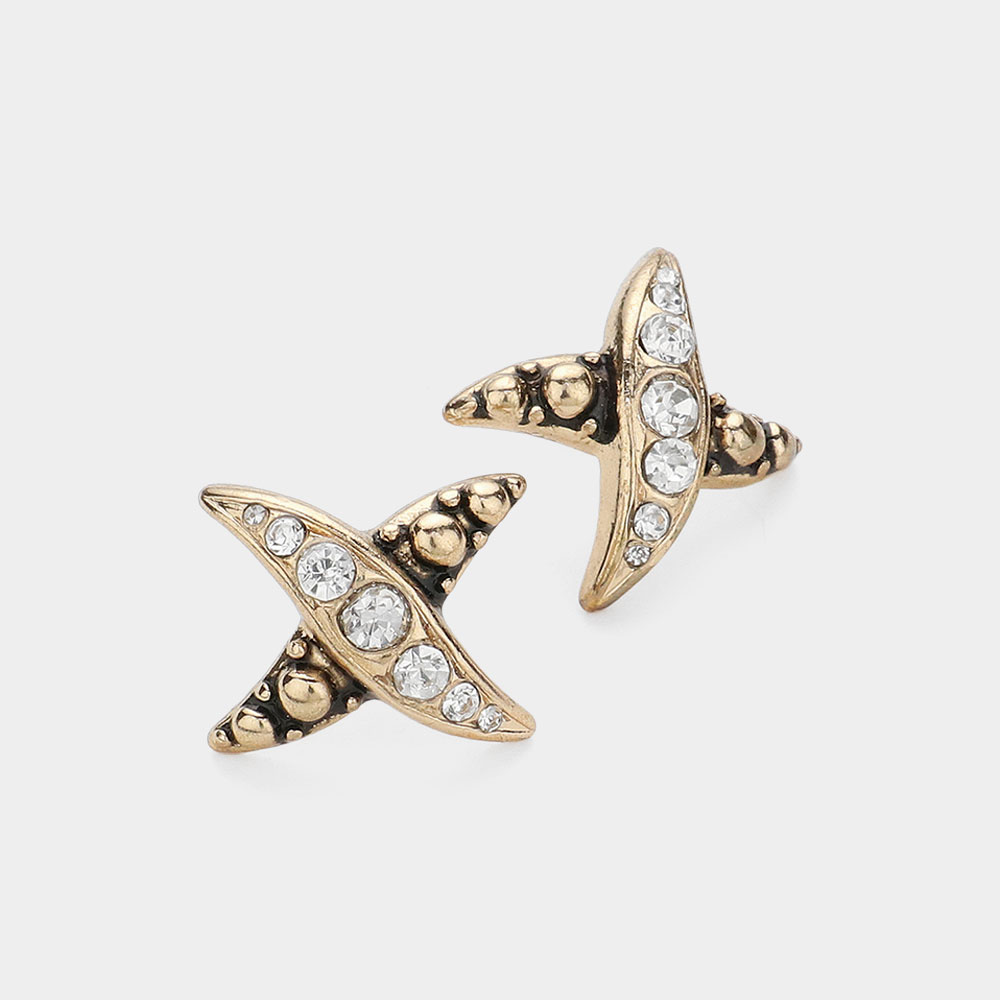 Patterned Metal Rhinestone Stud Earrings
